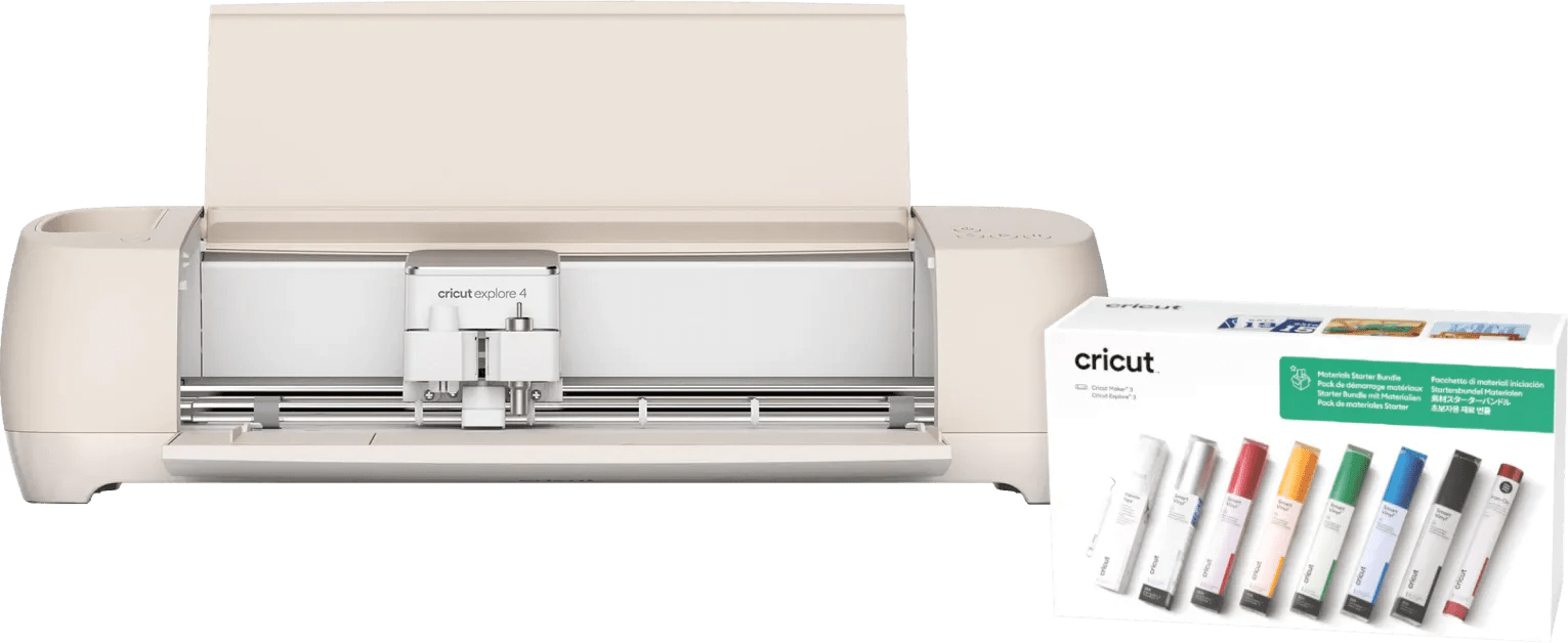 Begin gelijk aan je eerste ontwerp met de Explore Startersbundel. Bij deze bundel krijg je de Cricut Explore 4 en de Cricut Startersbundel voor de Explore meegeleverd. De Explore 4 snijdt snel en precies in meer dan 100 materialen, zoals papier, karton en smart vinyl. Zo maak je gemakkelijk stickers, kaarten of een opdruk voor een T-shirt. Je werkt zonder snijmat en maakt ontwerpen tot 3,6 meter lang. De machine controleert van tevoren of je genoeg materiaal hebt, zodat je niet halverwege hoeft te stoppen. Met de Startersbundel heb je gelijk alles in huis: smart vinyl, iron-on, transfertape en een pelhaak. De iron-on gebruik je om textiel te bedrukken met een strijkijzer of hittepers. Met de pelhaak verwijder je kleine stukjes materiaal. Breng je ontwerp netjes en gemakkelijk over op verschillende oppervlakken met de transfertape.