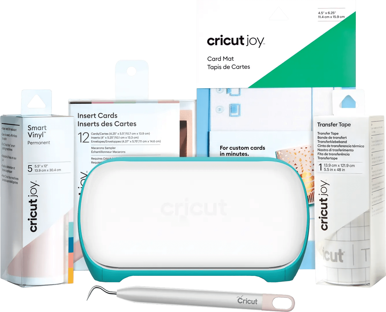 Ga meteen aan de slag met je eerste project met de Cricut Joy Startersbundel. Je ontvangt bij deze bundel de Cricut Joy, een pelhaak, een kaartenmat, insteekkaarten, vinyl en transfertape. Maak labels, gepersonaliseerde kaarten, vinyl stickers en nog veel meer. Met de Cricut Joy heb je een kleine snijplotter die je gemakkelijk opbergt. Meenemen is ook geen probleem, want de Joy weegt nog geen 2 kilogram. Je snijdt met de Joy in meer dan 50 materialen, van vinyl tot hobbypapier. Of laat de Joy een persoonlijke tekst op een kaartje schrijven in het mooiste handschrift. Stuur de Cricut Joy aan via bluetooth vanaf je smartphone of computer. Je gebruikt 3 tools waarmee de snijplotter snijdt, schrijft of folie overbrengt.