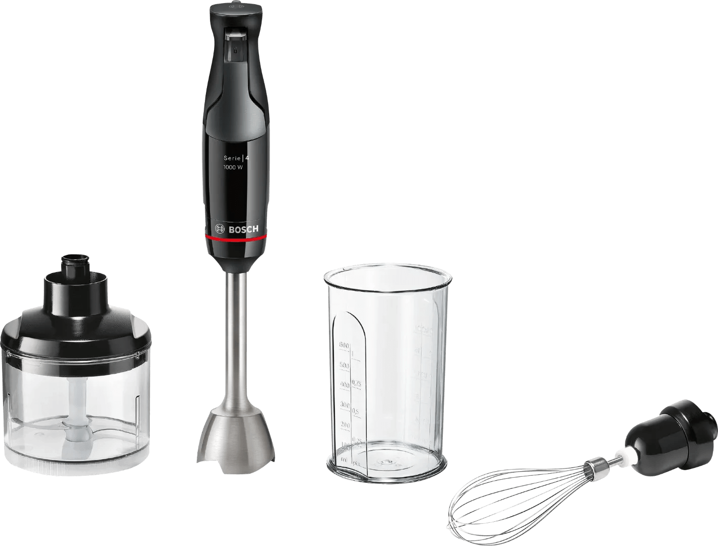 Met de Bosch ErgoMaster Serie 4 MSM4B621 hak je noten of een uitje fijn dankzij de meegeleverde hakmolen. Naast de hakmolen krijg je er ook een garde opzetstuk bij. Hiermee klop je slagroom en eiwitten op. Je verwisselt de staafmixervoet gemakkelijk met een ander opzetstuk dankzij het kliksysteem. Door dit kliksysteem maak je het opzetstuk met één druk op de knop los. Je mixt ook noten en harde groenten. De staafmixer heeft namelijk een krachtig vermogen van 1.000 watt. Je stemt de snelheid af op de bereiding. De snelheid verhoogt namelijk wanneer je harder op de knop drukt. Na gebruik reinig je de onderdelen in de vaatwasser.