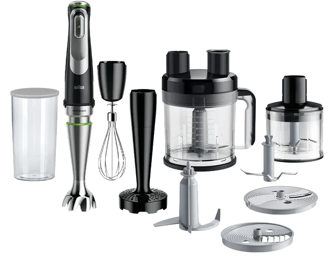 Met de Braun MultiQuick 9 MQ9187XLI Zwart haal je een staafmixer en foodprocessor met een volledige set accessoires in huis. Dankzij het vermogen van 1.200 watt pureert en mixt de staafmixer zonder moeite harde ingrediënten. De op-en-neer bewegende staafmixervoet helpt om hierbij zelfs de hardste stukjes glad te pureren. Het anti-spat design zorgt ervoor dat jouw keuken tijdens het mixen schoon blijft. Voor grote hoeveelheden gebruik je de XL foodprocessor, waarmee je met de verschillende snijmessen bijvoorbeeld wortels julienne raspt, aardappels tot friet snijdt of deeg kneedt. In de kleinere hakmolen maal je ijs fijn voor je smoothie, of maak je een lekkere pesto. Je reinigt de staafmixer en accessoires na gebruik eenvoudig in de vaatwasser.