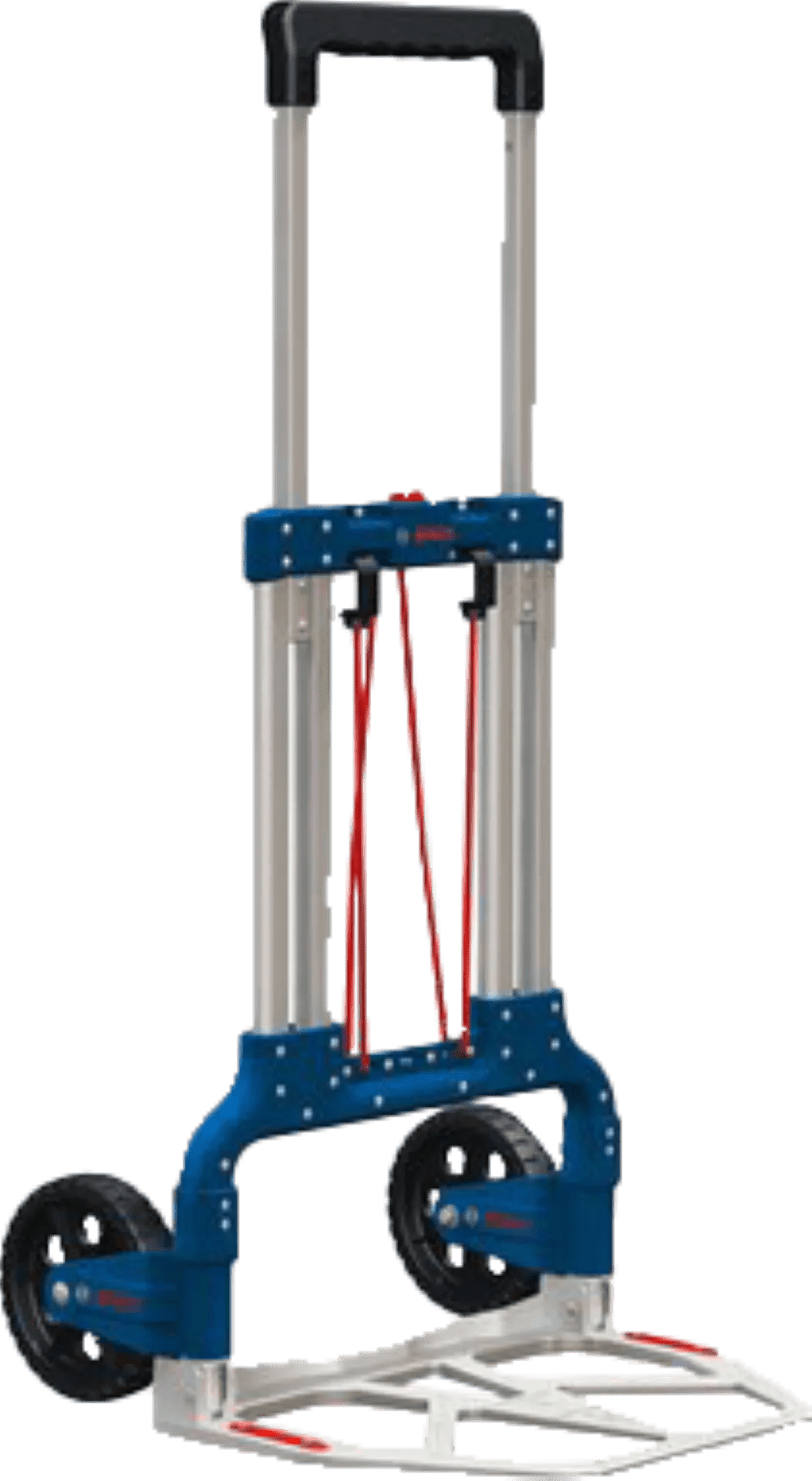 Rol meerdere koffers tegelijk van de ene naar de andere plek met de Bosch Professional Caddy L-BOXX. Op de wagen is plek voor meerdere L-BOXX koffers (niet meegeleverd). Je maakt de gestapelde koffers stevig vast met de elastische band. De kar van aluminium weegt weinig, waardoor je hem comfortabel meetrekt. Klap de handgreep en wielen in, zodat je opbergruimte bespaart.