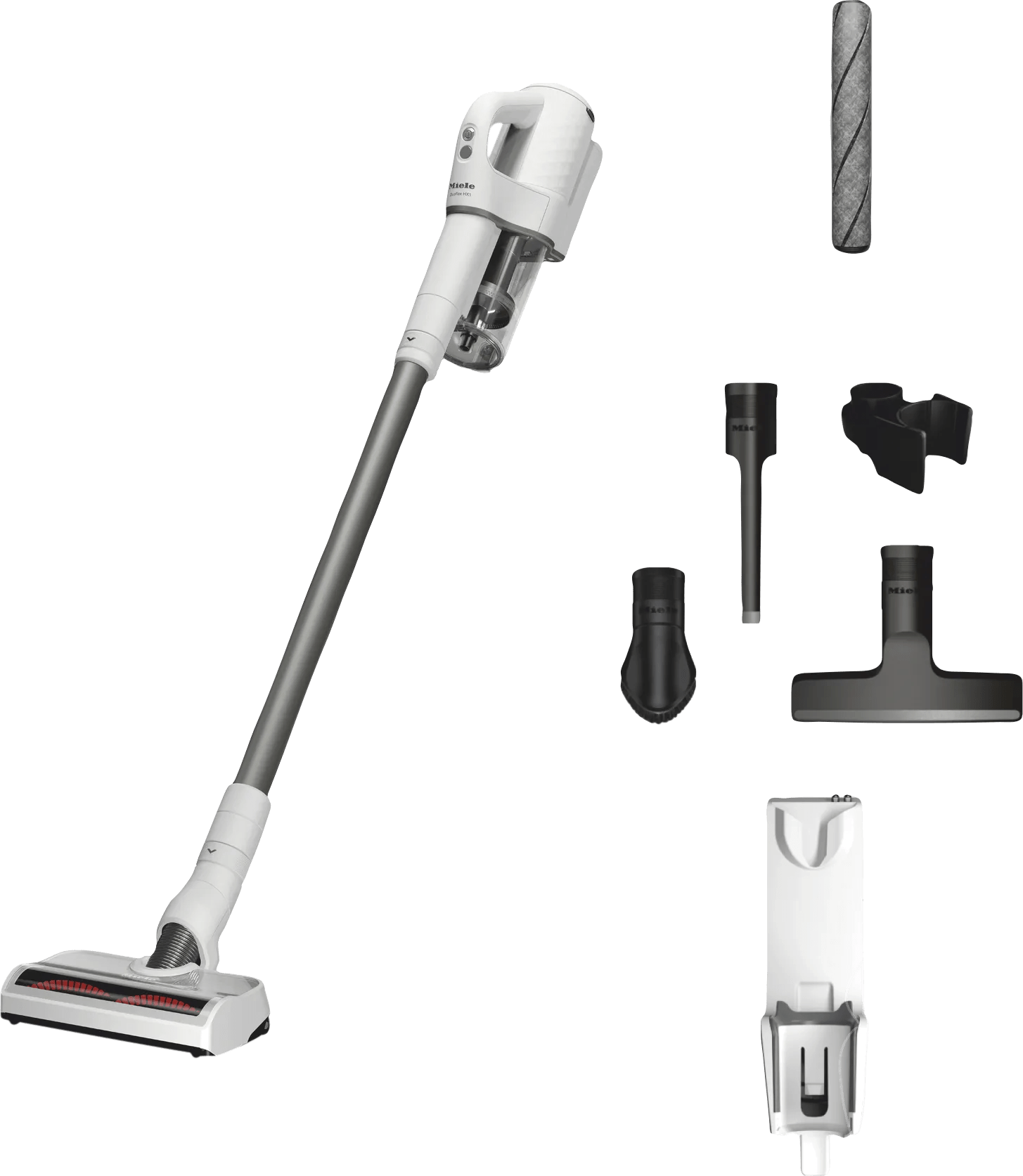 Je ontvangt bij de Miele Duoflex HX1 Hardfloor een zachte vloerborstel waarmee je kwetsbare houten vloeren stofzuigt. Omdat de borstel zacht is, voorkom je dat je krassen maakt. De ronddraaiende borstel tilt vuil en stof gemakkelijk van de vloer. Met de Multifloor borstel stofzuig je harde vloeren en tapijt grondig. De zuigkracht van 210 watt past automatisch aan op het vloertype dat je stofzuigt. Zo weet je zeker dat je grondig schoonmaakt. Je maakt van de steelstofzuiger in één beweging een kruimelzuiger dankzij het Speedlock systeem. De steel blijft in de wandoplader hangen. Dankzij het ComfortClean filter vangt de stofzuiger 99,99 procent van de kleinste stofdeeltjes op. Hierdoor blijft de uitblaaslucht goed schoon. De ingebouwde stofbak leeg je met één klik boven de prullenbak.