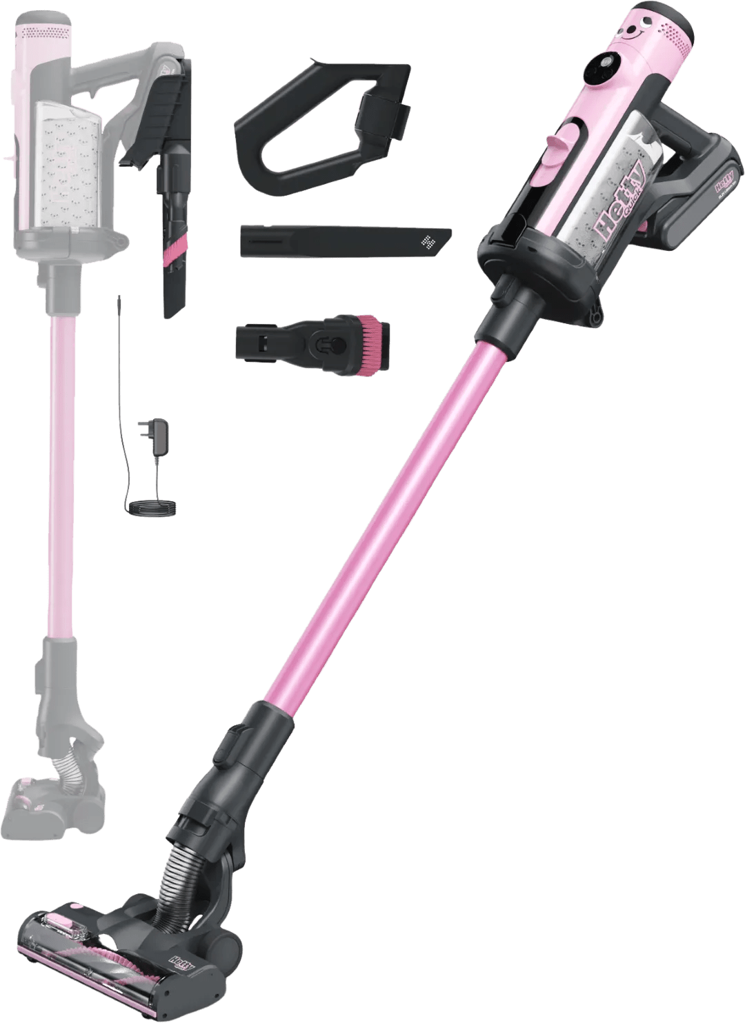 Met de Numatic Hetty Quick HTY100P roze stofzuig je grondig je tapijt en vloerkleden. De ronddraaiende borstel met harde haren in de combizuigmond zijn handig voor het verwijderen van dierenharen. Je gebruikt de steelstofzuiger ook als kruimelzuiger. Je klikt hier gemakkelijk de kierenzuigmond en het combinatie-accessoire op. Je stofzuigt je plinten en maakt je meubels stof- en kruimelvrij met de accessoires. De steelstofzuiger heeft een accuduur van één uur. Na 4 uur is hij weer volledig opgeladen en klaar voor zijn volgende rondje. De meegeleverde pods zijn de filters en de stofzuigerzak van de steelstofzuiger. Ze drukken het stof samen, waardoor het stofreservoir ruim blijf. Hierdoor leeg je het stofreservoir minder vaak dan de meeste steelstofzuigers. Er komt geen stof vrij tijdens het legen van de zak. De geurcapsule laat via de uitblaaslucht een frisse geur achter.