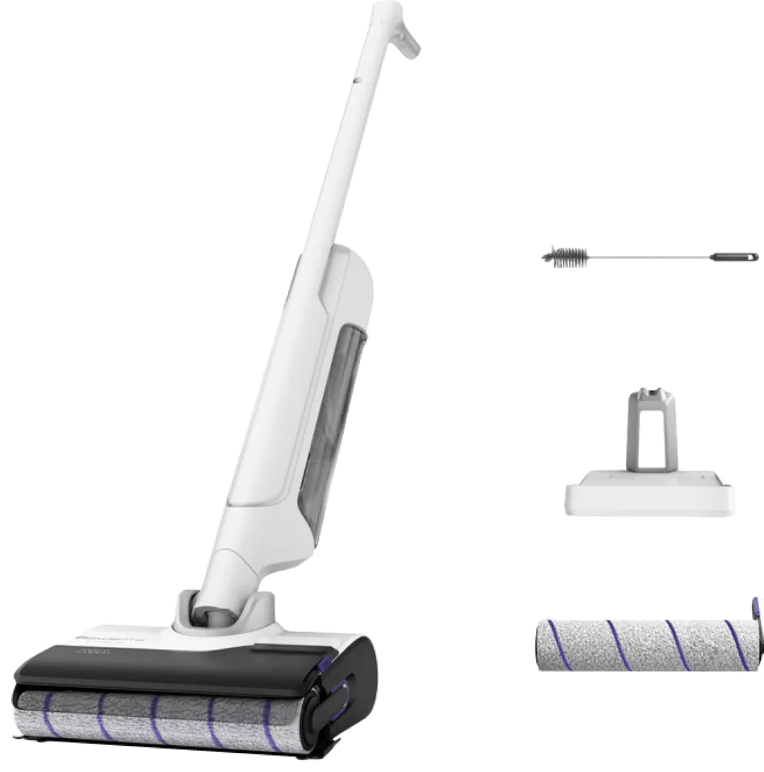 De Rowenta X-Clean 10 GZ7540 stofzuigt en dweilt tegelijk. Zo bespaar je tijd terwijl je schoonmaakt. Je maakt tot 60 minuten schoon met één acculading. Dat is genoeg voor het hele huis. De stofzuiger reinigt en droogt zichzelf automatisch. Zo kost het onderhoud jou geen moeite. Met een gewicht van 0,8 kilogram en zelfaangedreven rollers beweeg je de stofzuiger soepel door je huis. Je reinigt makkelijk onder meubels dankzij de 180 graden draaihoek en het slanke ontwerp. De wet & dry stofzuiger gebruikt altijd schoon water, voor een fris schoonmaakresultaat. De anti-klit microvezelroller haalt ook dierenharen goed weg. Je bedient alles via het led scherm. De stemassistent geeft handige tips terwijl je schoonmaakt.