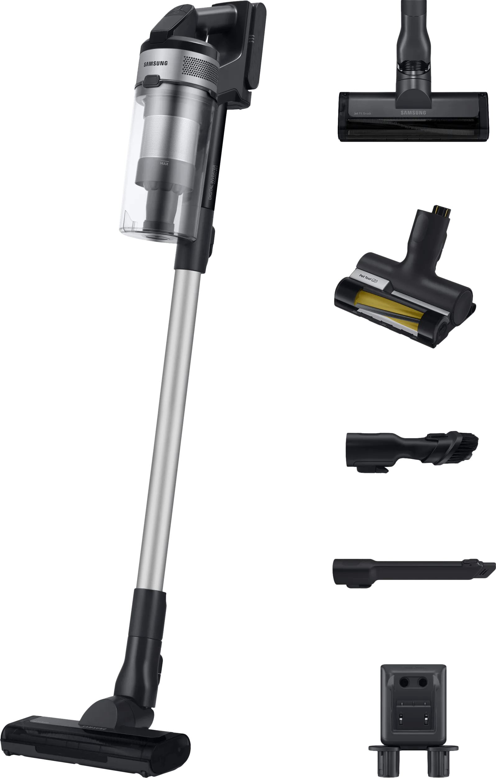 Met de Samsung Jet 65 Pet stofzuig je jouw huis en verwijder je dierenharen van meubels. Dankzij de meegeleverde Pet Tool met rubberen zuigmond en borstels zuig je haren beter van bekleding. De vloerborstel is geschikt voor zowel harde vloeren als tapijt. Omdat deze 180 graden draaibaar is, beweeg je gemakkelijk om hoeken. De steelstofzuiger is met 1,48 kilogram licht en til je gemakkelijk op. Zo stofzuig je met minder moeite. Het meerlaagse filter vangt 99,999 procent van de stofdeeltjes op. Met een zuigkracht van 150 watt verwijder je vuil. Je gebruikt de stofzuiger tot 40 minuten na één keer opladen. Als de stofzuiger leeg is, laad je deze op in het oplaadstation. Hier berg je ook de accessoires in op.