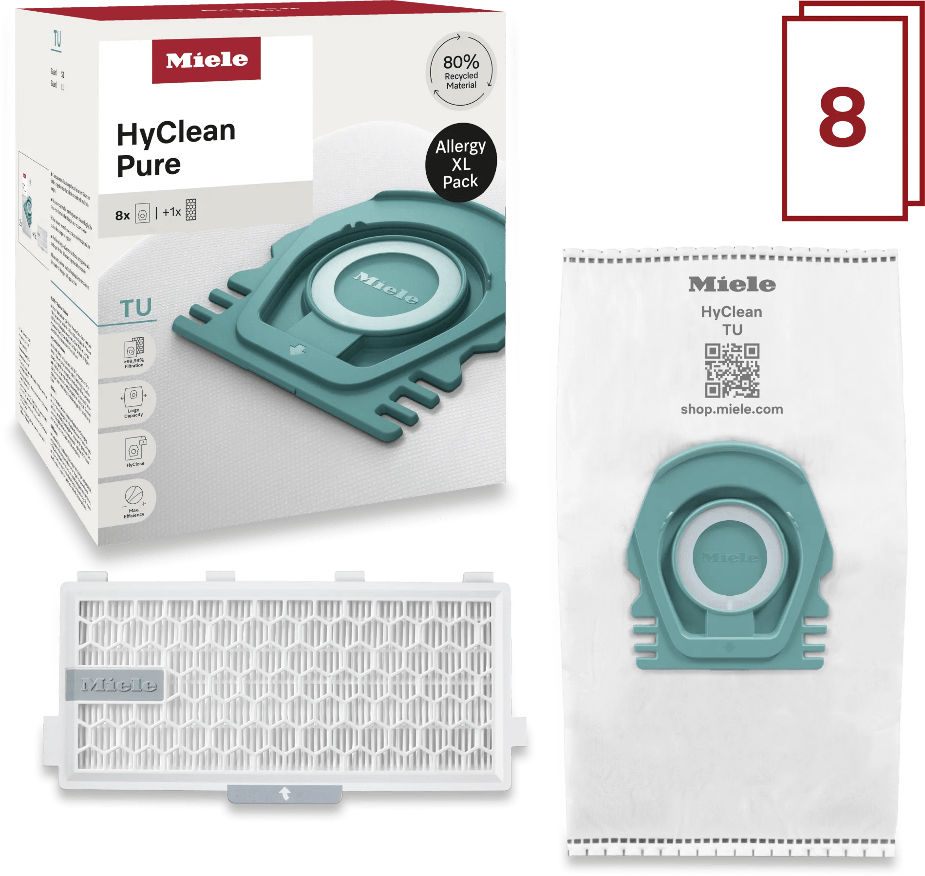 Miele Stofzuigerzakken HyClean Pure TU XL-Pack (8 stuks)