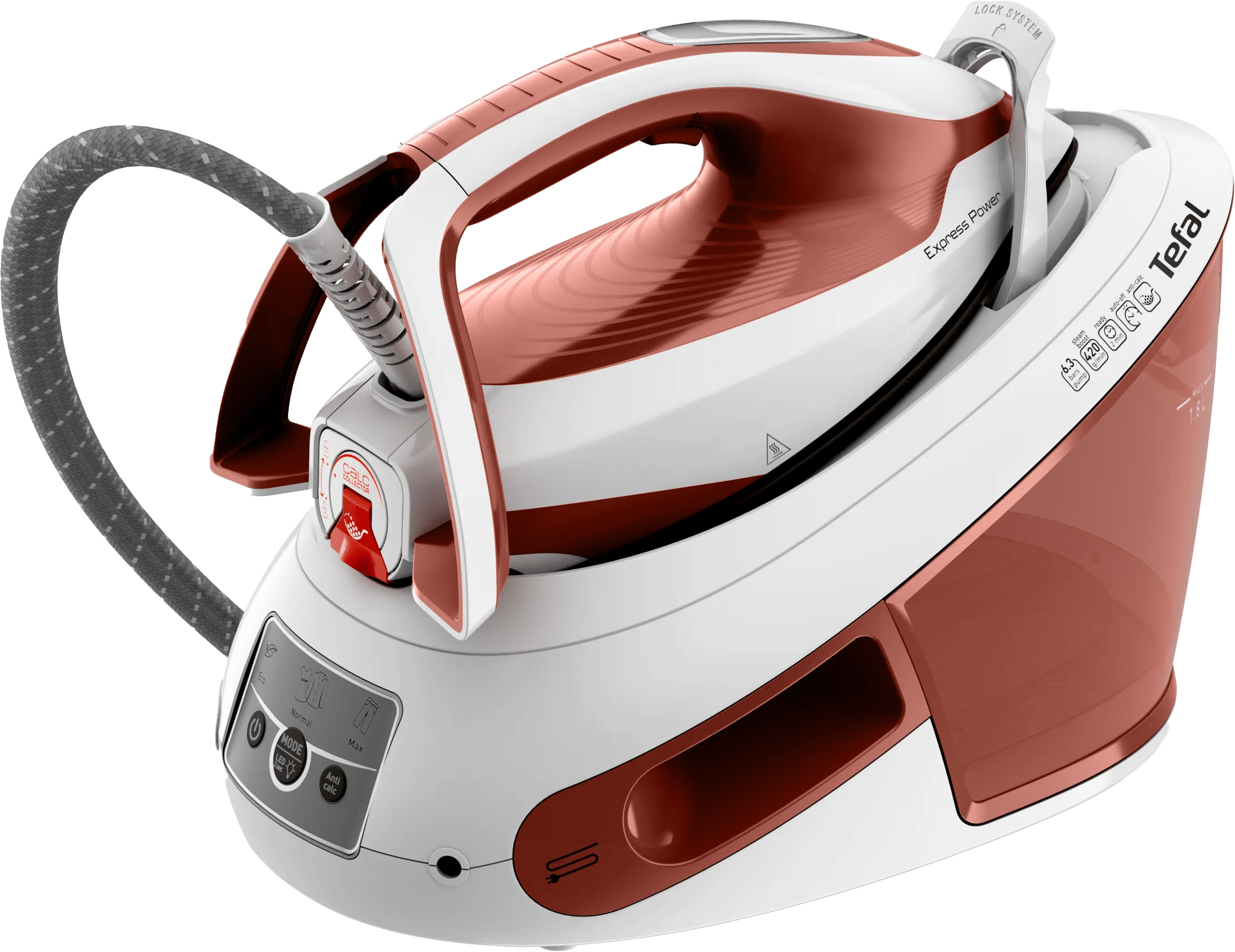 Met de Tefal Express Power SV8110 strijk je grote hoeveelheden wasgoed glad met weinig moeite. Het grote waterreservoir van 1,8 liter is afneembaar, waardoor je ‘m gemakkelijk bijvult onder de kraan. Dankzij de continue stoomproductie van 120 gram per minuut en de stoomstoot van 420 gram per minuut, strijk je kreukels snel glad. Kalkaanslag belandt in de kalkverzamelaar. Deze spoel je af onder de kraan. De Durilium AirGlide AutoClean strijkzool glijdt over elk type textiel. Je hoeft ‘m niet schoon te maken, dus dat scheelt jou moeite. Je kiest uit 3 standen terwijl je strijkt: Eco, Normal of Max. De stoomgenerator bepaalt op basis daarvan de juiste temperatuur en stoomhoeveelheid.