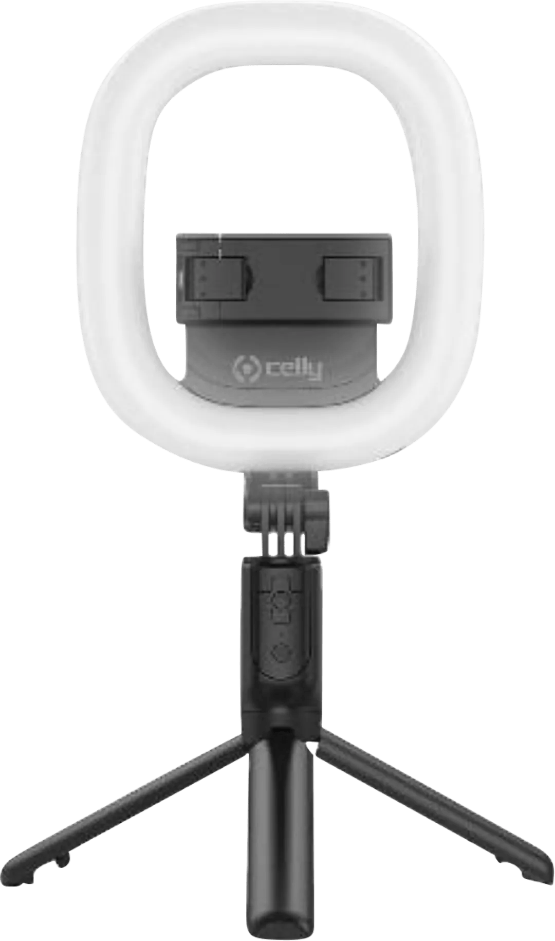De Celly Ring Light Tripod Compact Bluetooth is een draagbaar statief met ingebouwde ringlamp. Hierdoor maak je op iedere locatie goed belichte opnames met je smartphone. Deze lamp is uitgerust met een smartphonehouder waar je jouw telefoon eenvoudig inklikt. Daarnaast ontvang je een bluetooth afstandsbediening, waarmee je jouw opnames start en stopt. Zo heb je tijdens het maken van video's je handen vrij en kan je de coolste dansjes opnemen voor op TikTok. Film je liever wel met je smartphone in de hand? Dan schuif je het statief uit tot een selfiestick, zodat je gemakkelijk jezelf en de omgeving filmt. De lamp heeft 3 verschillende standen, waarmee je de kleurtemperatuur regelt. Je hebt de keuze uit koud, warm en neutraal licht.