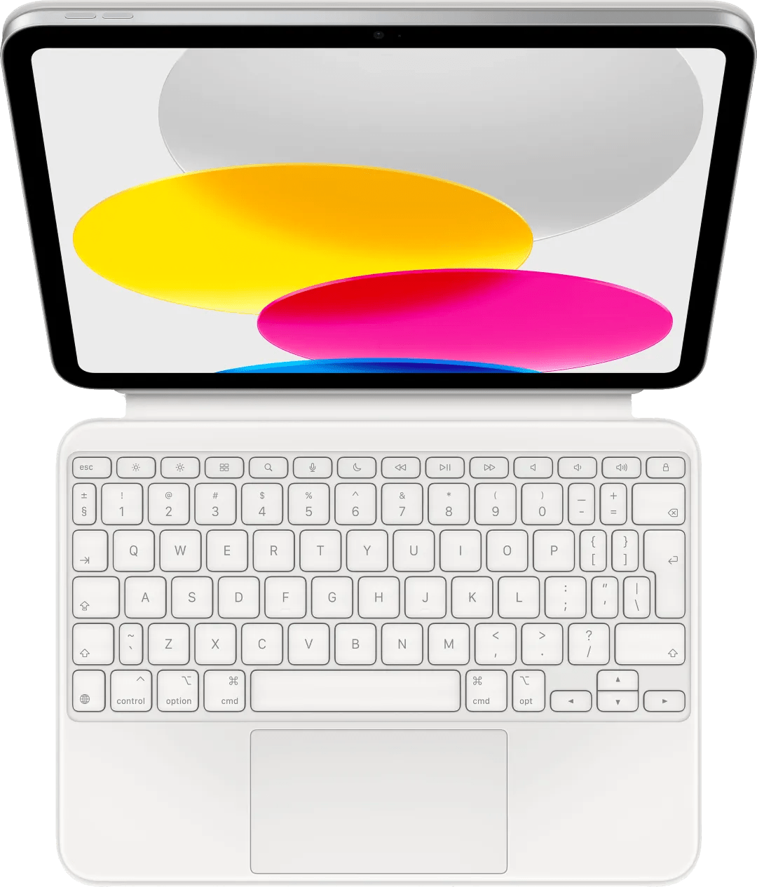 Met Apple Magic Keyboard Folio iPad (2025/2022) tover je jouw iPad om in een laptop. Magic Keyboard Folio bestaat uit twee delen. Je tikt comfortabel lange stukken tekst op het toetsenbord. Het toetsenbord heeft ook een trackpad. Hiermee navigeer je razendsnel door alle menu's en apps. Je klikt de hoes magnetisch vast aan de achterkant van iPad. Je zet de tablet met de ingebouwde standaard rechtop neer. Handig voor tijdens je werk of wanneer je een film kijkt. Wanneer je geen toetsenbord gebruikt, koppel je deze gemakkelijk los.