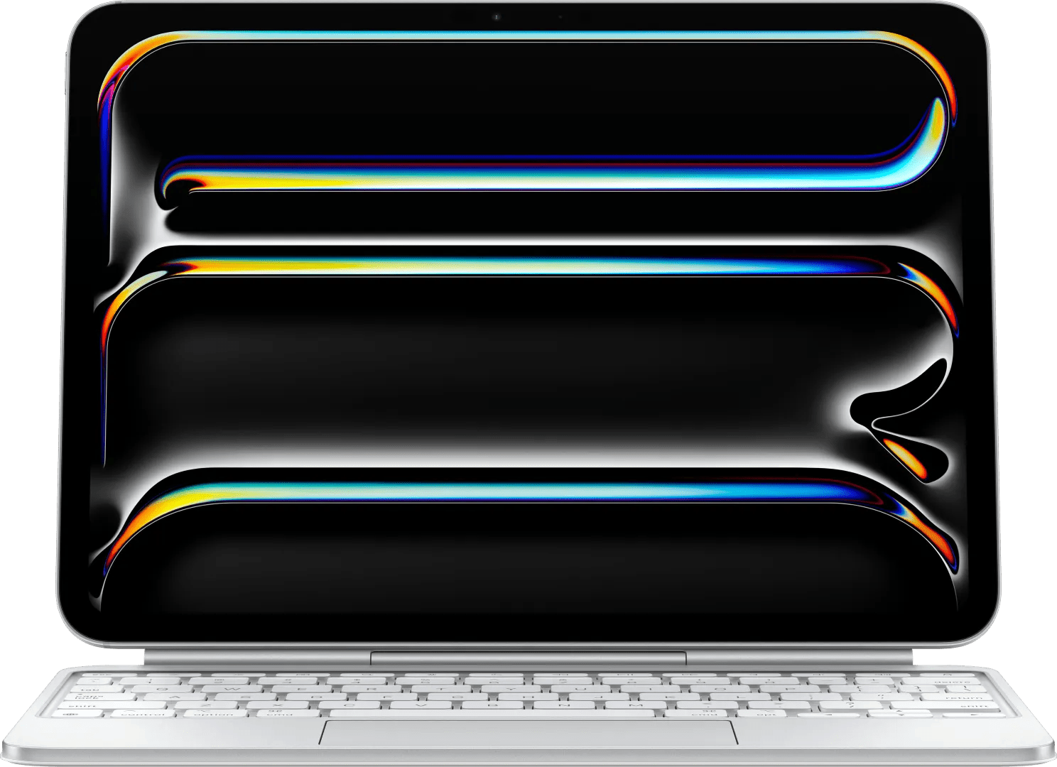 Je gebruikt je iPad Pro als MacBook met de Apple Magic Keyboard iPad Pro 11 inch (2025/2024) QWERTY Wit. Je iPad Pro zweeft boven het toetsenbord, waardoor jij je iPad Pro makkelijk in een comfortabele kijkhoek zet. Je bedient je muziek snel en wijzigt de helderheid van je iPad gemakkelijk dankzij de handige functietoetsen op de bovenste rij. Door de grote trackpad navigeer je soepel door apps en programma's. Ben je tot in de late uurtjes aan het werken? Dankzij de verlichte toetsen sla jij ook 's avonds de juiste toetsen aan. De usb C poort aan de zijkant van Magic Keyboard gebruik je om jouw iPad Pro op te laden. Zo blijft de usb C poort op je iPad vrij om andere accessoires op aan te sluiten. Neem je iPad Pro mee onderweg? Klap het toetsenbord dicht en bedek op die manier ook het scherm van jouw iPad. Geschikt voor iPad Pro 11 inch (2025/2024).