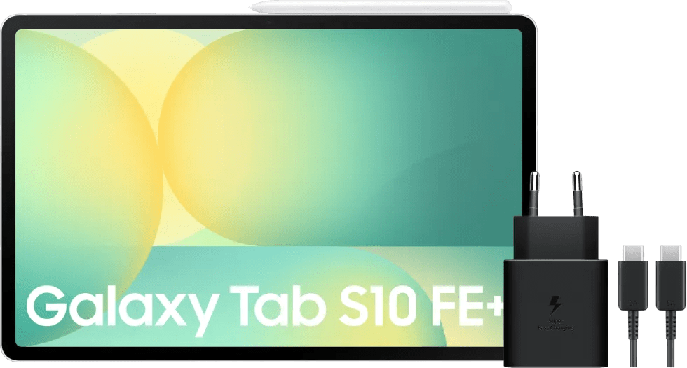 Laad je tablet direct snel op met de Samsung Galaxy Tab S10 FE Plus 13,1 inch 128GB Wifi Zilver + Oplaadpakket. Standaard zit er geen oplader bij maar, met deze meegeleverde oplader laad je jouw tablet binnen 2 uur op. Op het grote 13,1 inch scherm zet je twee apps naast elkaar open, waardoor je gemakkelijk multitaskt. Zo maak je bijvoorbeeld aantekeningen terwijl je videobelt. Je gebruikt deze waterbestendige tablet ook in bad of naast het zwembad. De Tab S10 FE Plus heeft een helder, groot scherm waar de kleuren goed op overkomen. Met de meegeleverde S Pen Stylus maak je schetsen of schrijf je jouw notities op. Met 128GB zit je geheugen snel vol als je veel apps en bestanden downloadt. Kies voor 256GB als je niet elk jaar je geheugen wilt opruimen. Ga voor de Tab S10 FE Plus met 5G en blijf overal verbonden met het internet.