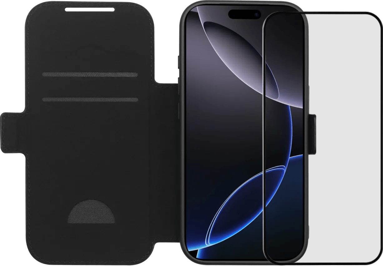 BlueBuilt Apple iPhone 17 Pro Book Case Leer Zwart + BlueBuilt iPhone 17 Pro Screenprotector Glas