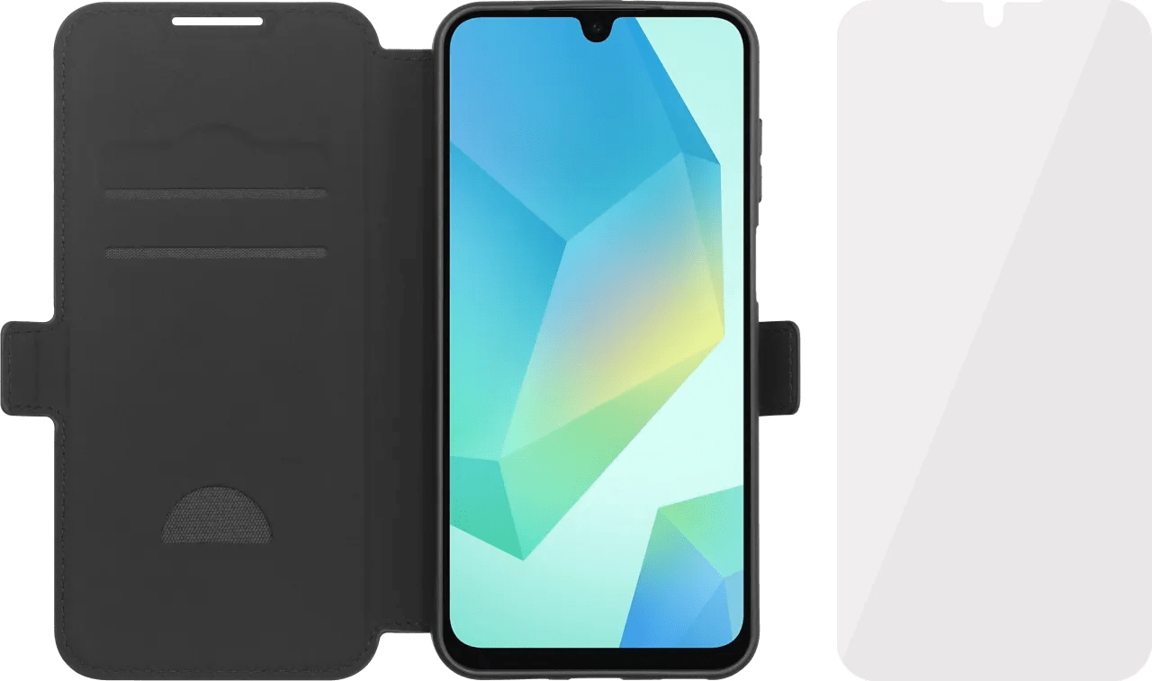 Bescherm je Samsung Galaxy A17 tegen schade met de BlueBuilt Samsung Galaxy A17 Book Case Leer Zwart en BlueBuilt Samsung Galaxy A17 Screenprotector Glas. Met het hoesje en de screenprotector vang je zowel krassen op je scherm als stoten aan de zijkant op. Zo blijft je smartphone rondom beschermd. De privacy screenprotector voorkomt dat anderen meekijken op je scherm. Met de book case bescherm je zowel de voor- als achterkant van je smartphone. Deze book case is gemaakt van stevig leer en voelt luxe aan. Aan de linkerkant van het hoesje is er ruimte voor pasjes, zodat je niet altijd je portemonnee hoeft mee te nemen. Je sluit het telefoonhoesje veilig af met een magneet, zodat je scherm niet beschadigd wordt door de losse sleutels in je tas. Wil je jouw telefoon even neerleggen? De hoge randen zorgen voor bescherming, om krassen en beschadigingen te beperken. Het hoesje is op maat gemaakt voor de smartphone, waardoor je de knoppen makkelijk bedient en je camera vrij blijft. Je laadt je smartphone draadloos op met de hoes eromheen.
