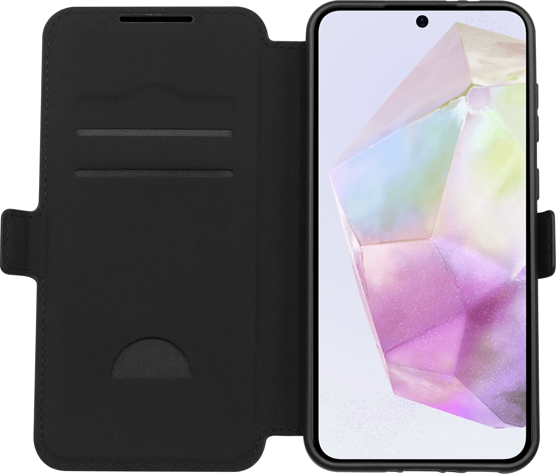 Bescherm de voor- en achterkant van je smartphone tegen beschadigingen met de BlueBuilt Samsung Galaxy A36 Book Case Zwart. Dit hoesje heeft namelijk een voorflap die je dichtklapt wanneer je je smartphone niet gebruikt. Zo stop je hem dus gerust in je tas samen met je scherpe sleutels. Klap de voorflap om en gebruik hem als standaard. Dit is handig als je een serie kijkt in de trein. Ook bewaar je je belangrijkste pasjes in de voorflap van het hoesje.