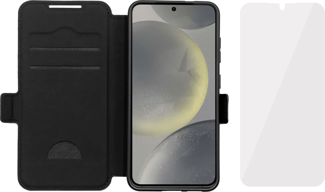 BlueBuilt Samsung Galaxy S25 Ultra Book Case Leer Zwart + BlueBuilt Screenprotector Glas