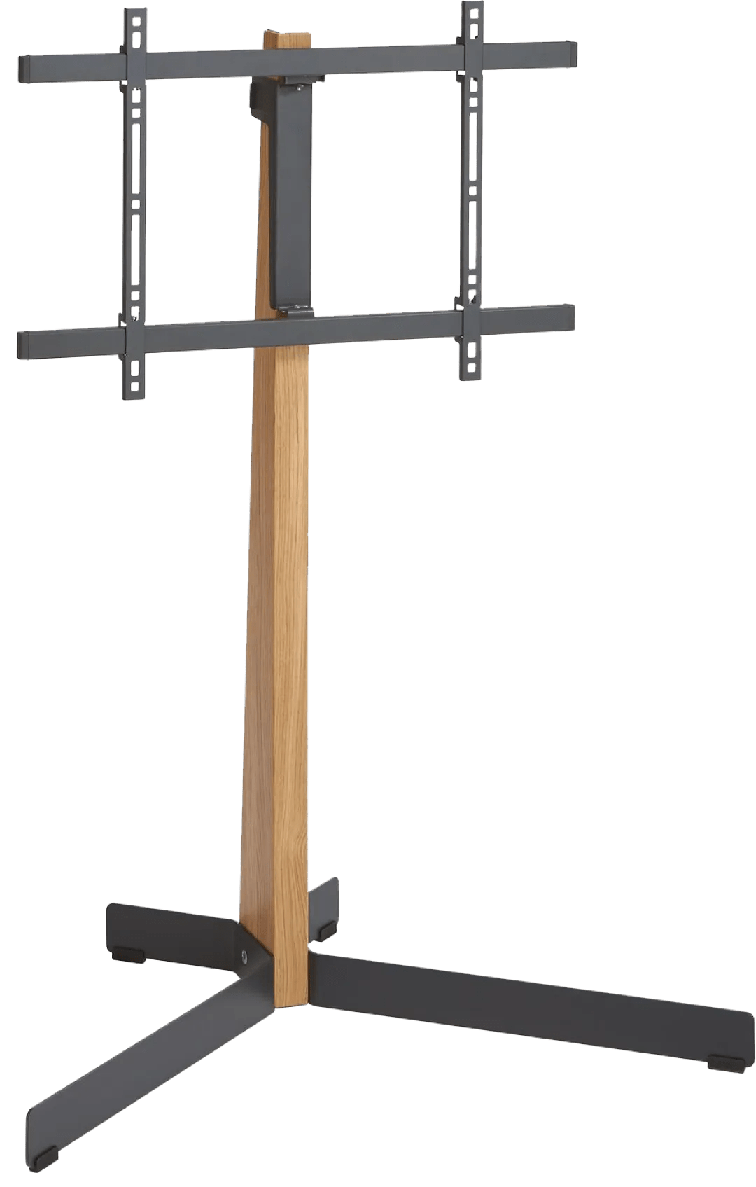 Met de Vogel's TVS 3695 haal je een stijlvolle, eikenhouten tv standaard in huis. Deze mooie standaard is een elegant alternatief voor een tv meubel. Plaats bijvoorbeeld de tv als een pronkstuk midden in de ruimte of minder opvallend in de hoek van je kamer. Je draait de tv tot 90 graden in de gewenste richting en zet hem gemakkelijk hoger of lager met de draaiknop aan de achterzijde. Hierdoor heb je goed zicht op de televisie vanuit verschillende plekken in je kamer. Kijk bijvoorbeeld tv vanaf de eettafel of toch lekker languit vanaf de bank. Terwijl je geniet van je tv heb je geen last van zichtbare kabels doordat je ze gemakkelijk wegwerkt in de kabelgoot. Deze tv standaard is geschikt voor tv's van 40 tot 77 inch met een maximaal gewicht van 50 kilo.
