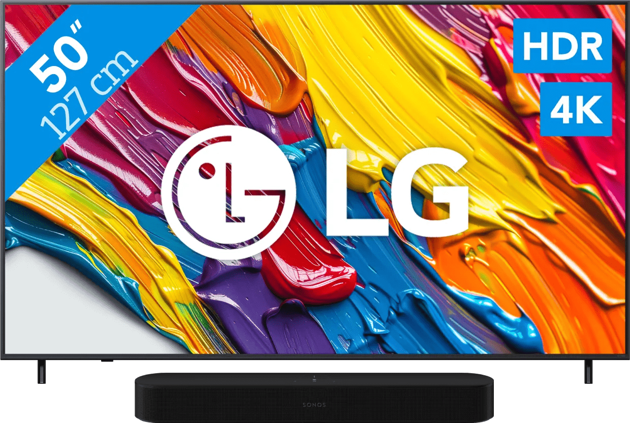 Geniet van realistisch beeld en geluid met de LG 50″ QNED82 4K (2025) + Sonos Beam Gen2 Zwart bundel.