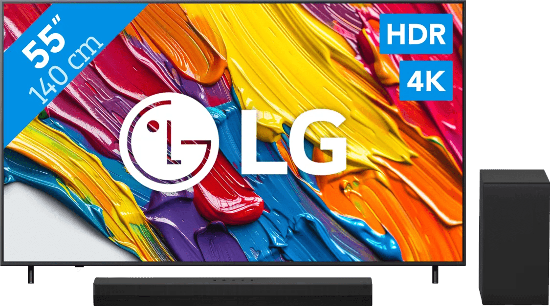 Geniet van kleurrijke beelden en diepe bastonen met deze LG 55" QNED82 4K (2025) + LG DS40T bundel. Televisie Kijk naar levendige beelden met de LG 55" QNED82 4K (2025). Deze tv gebruikt de QNED techniek voor een kleurrijke kijkervaring. Piepkleine deeltjes achter het scherm filteren het licht van de achtergrondverlichting, waardoor de tv alleen de juiste kleuren toont. Zo zie je bijvoorbeeld alle kleurtinten van een zonsondergang. De 55 inch QNED82 heeft een verversingssnelheid van 100 hertz. Zo zijn bewegingen op het beeld soepel, zonder haperingen. Soundbar Voeg meer bastonen aan je film of muziek toe met de LG DS40T. De meegeleverde subwoofer versterkt bastonen. Zo hoor je ze luid en duidelijk. De stevige bastonen zorgen voor meer diepte in films, waardoor je ze levendiger ervaart. De soundbar geeft surround sound, waardoor je geluid van verschillende kanten hoort. Hierdoor klinkt de film of serie realistisch.