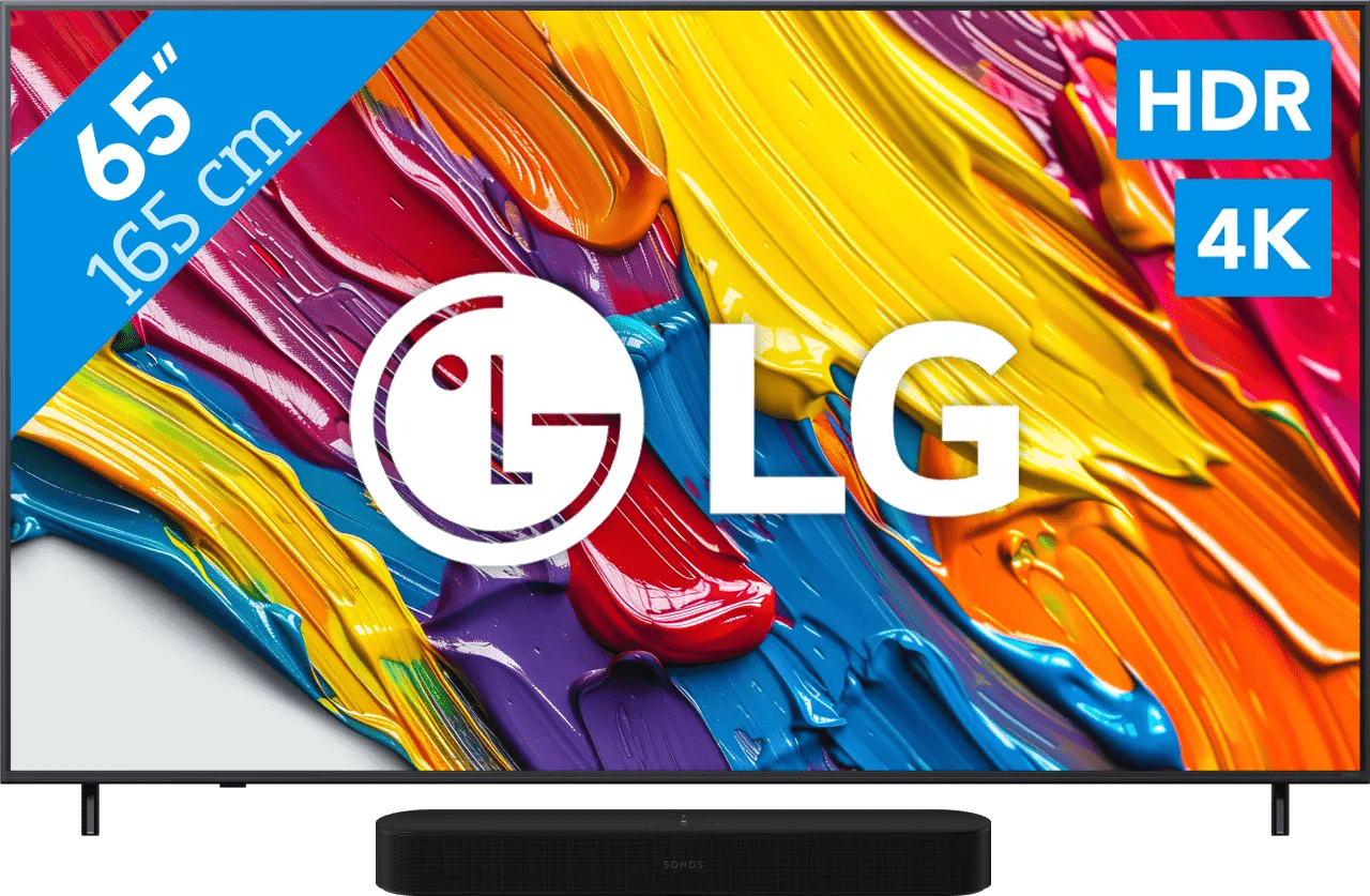 Geniet van realistisch beeld en geluid met de LG 65" QNED82 4K (2025) + Sonos Beam Gen2 Zwart bundel. Televisie Kijk naar levendige beelden op een groot scherm met de LG 65" QNED82 4K (2025). Deze tv gebruikt de QNED techniek en edge lit local dimming voor een kleurrijke kijkervaring. Piepkleine deeltjes achter het scherm filteren het licht van de achtergrondverlichting, waardoor de tv alleen de juiste kleuren toont. Zo zie je bijvoorbeeld alle kleurtinten van een zonsondergang. De 65 inch QNED82 heeft een verversingssnelheid van 100 hertz. Zo zijn bewegingen op het beeld soepel, zonder haperingen. Je weet meteen wie de fotofinish heeft gewonnen. Soundbar Met de Sonos Beam Gen2 Zwart geniet je van veel verschillende functies. De soundbar heeft Dolby Atmos. Deze technologie kaatst het geluid via het plafond naar je luisterpositie. Hierdoor lijkt het geluid van alle kanten te komen. Met TruePlay stem je de soundbar af op je woonruimte. Zo klinken films en series nog realistischer. Je voegt de Beam makkelijk toe aan je Sonos multiroom systeem via de Sonos app. Zo luister je in elke kamer naar hetzelfde nummer.