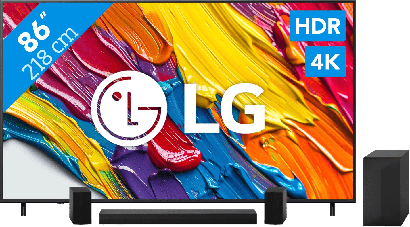 Geniet van kleurrijke beelden en ruimtelijk geluid met deze LG 86″ QNED82 4K (2025) + LG DS60TR bundel.