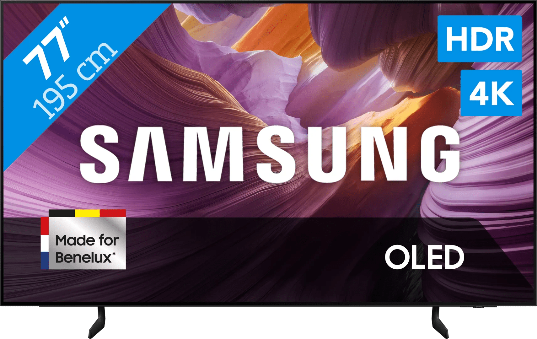 Met de Samsung 77" OLED S85F 4K (2025) kijk je naar scherpe beelden vol details. Deze televisie heeft een 4K resolutie, wat betekent dat het scherm meer dan 8 miljoen pixels toont. Dit is 4 keer scherper dan full hd, waardoor je elk detail ziet. Dit maakt de tv geschikt voor films, series en games. De verversingssnelheid van 100 hertz zorgt ervoor dat acties vloeiend in beeld komen. Een auto die voorbijrijdt of een voetbal die richting het doel vliegt, zie je zonder haperingen. Het 10 bit scherm toont 1 miljard kleuren, waardoor je geniet van realistische HDR beelden. Je ziet veel verschillende kleurtinten en een groot contrast. Dit maakt de tv geschikt voor het kijken van films en series of het spelen van games.
