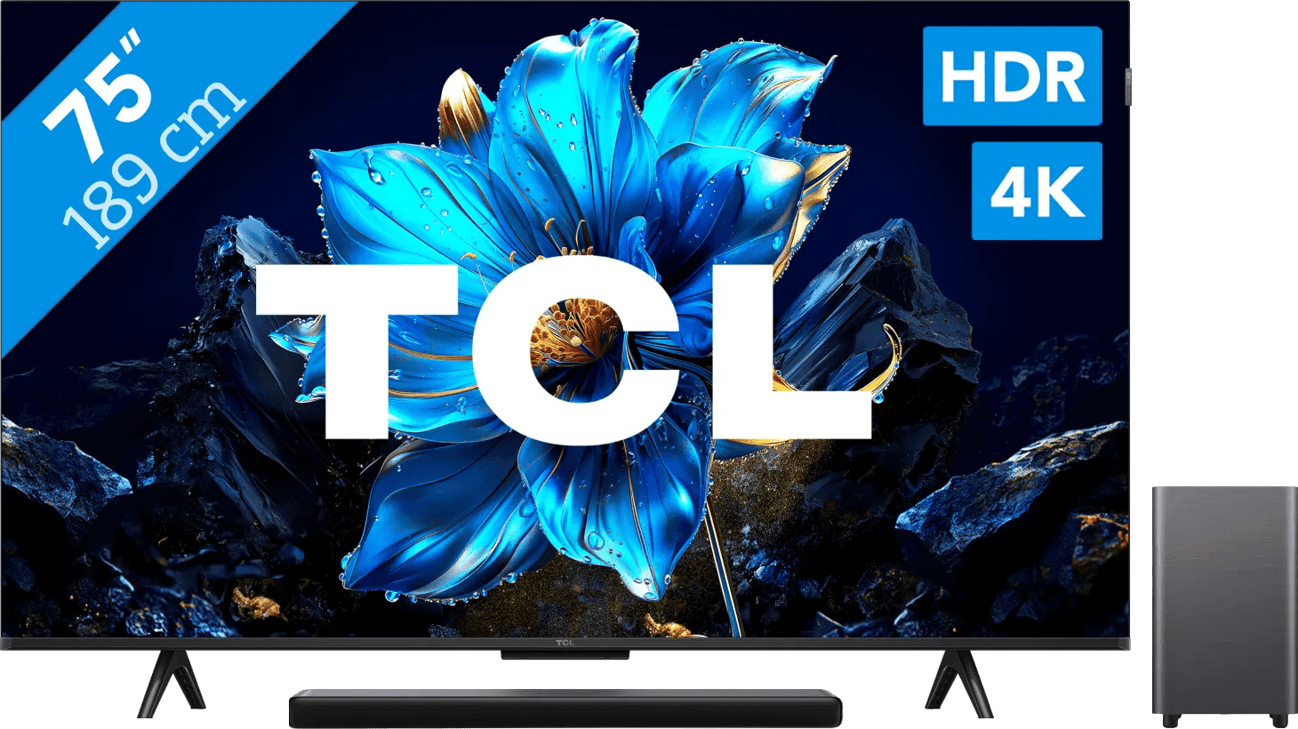 Geniet van kleurrijke 4K beelden en Virtual Dolby Atmos met de TCL 75" QLED P71K 4K (2025) + TCL S55H 2.1 Soundbar bundel. Televisie Met de TCL 75" QLED P71K 4K (2025) kijk je naar scherpe, kleurrijke beelden. Deze 75 inch tv heeft een QLED scherm. Piepkleine quantum dots zorgen ervoor dat het scherm alleen de juiste kleuren toont. Hierdoor kijk je naar realistische kleuren. Zo zijn details in schaduwen goed zichtbaar en zie je verschillende kleurdetails in felle natuurdocumentaires. Door de 4K resolutie kijk je naar scherpe beelden en mis je niets van je favoriete films. Soundbar Met de TCL S55H 2.1 soundbar verbeter je het geluid van je tv. Dankzij Virtual Dolby Atmos hoor je ruimtelijk geluid, zodat je films levendiger ervaart. Een vliegtuig in een film klinkt alsof hij door je kamer vliegt. Je krijgt een subwoofer bij de soundbar. Deze subwoofer versterkt bastonen en maakt het geluid realistischer. De bastonen voegen meer diepte aan een film of serie toe, waardoor je er meer in opgaat.