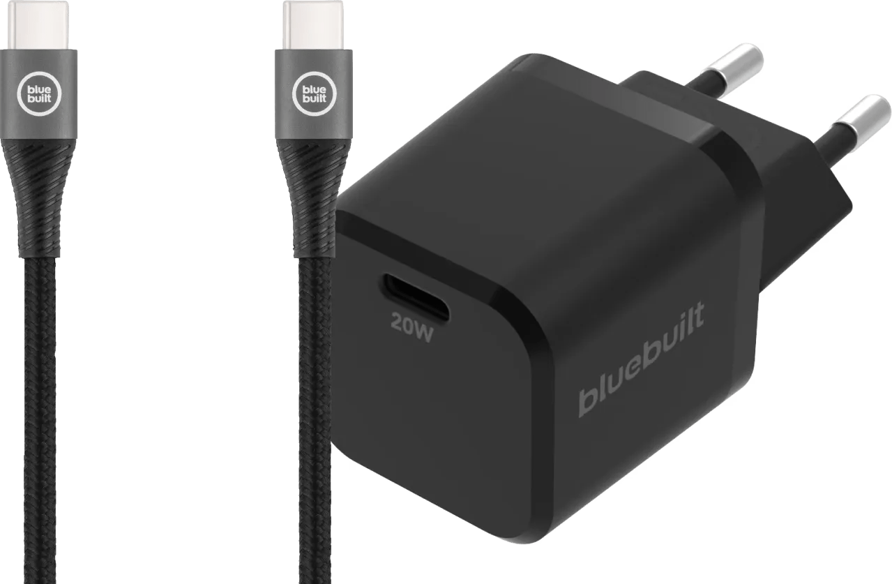 BlueBuilt Power Delivery en Quick Charge Oplader 20W + Usb C Kabel Nylon Zwart 1,5m