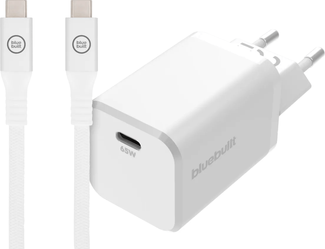 BlueBuilt Power Delivery Universele Oplader 65W + usb C oplaadkabel (2m) Wit