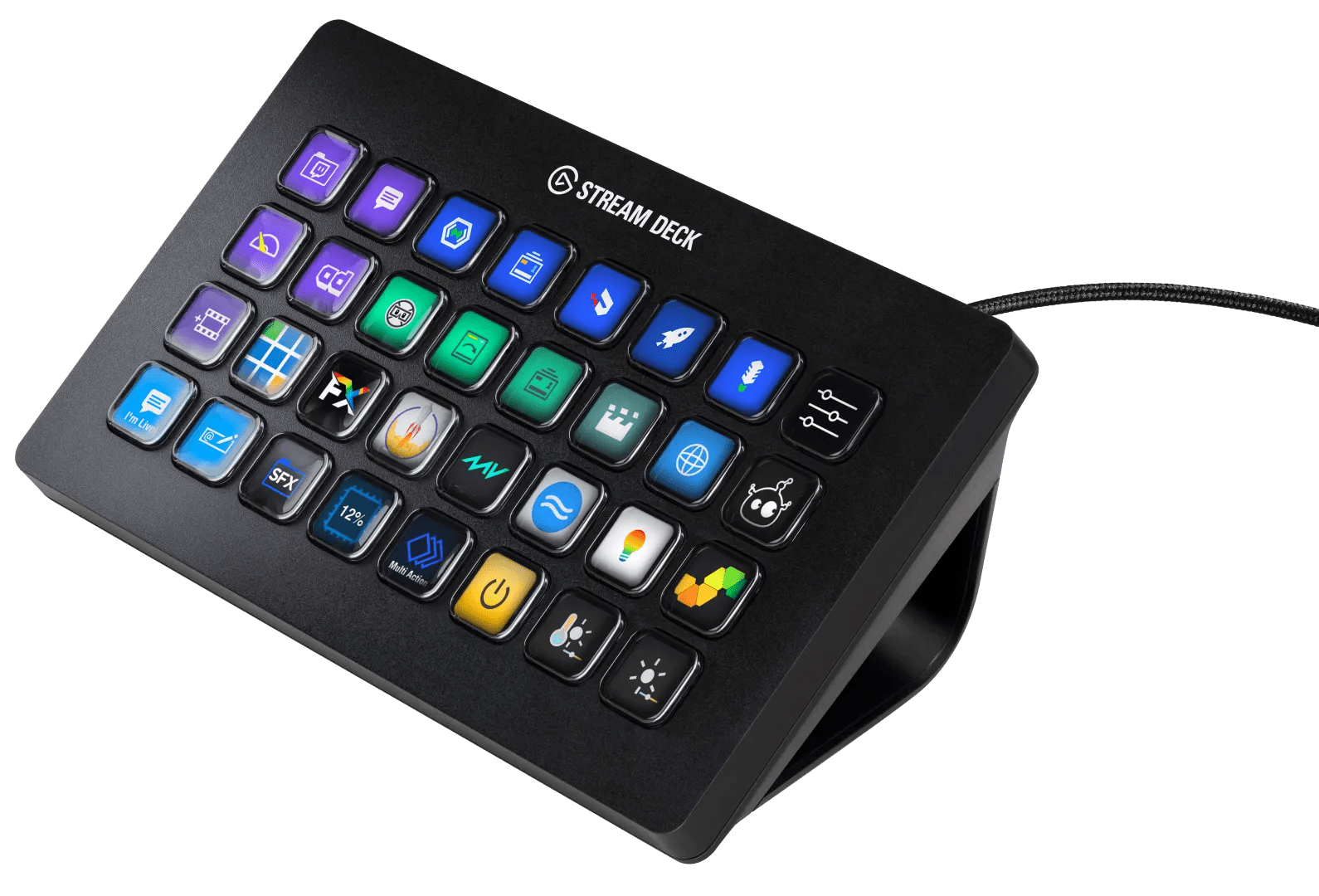 Koppel 32 knoppen met de Elgato Stream Deck XL waarmee je jouw publiek entertaint. Druk de knop tijdens jouw livestream om de perfecte afbeelding in beeld te laten komen. Om ieder gifje, afbeelding en geluidsfragment uit elkaar te houden, zijn de knoppen kleine plaatjes. Plaats een herkenbaar icoon bij de knop om alle 32 fragmenten uit elkaar te houden. Zo druk je nooit de verkeerde knop in. Als je klaar bent met streamen wijs je macro’s toe aan de Elgato voor het bewerken van jouw video’s. Zo staat die no-scope compilatie nog sneller op Youtube.