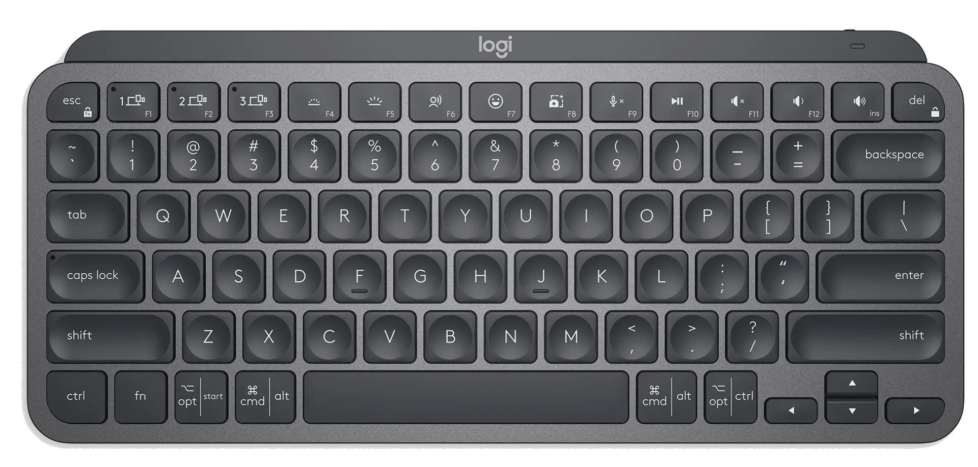 De Logitech MX Keys Mini Draadloos QWERTY Grafiet is een compact toetsenbord dat werkt met Windows en macOS. Het toetsenbord beschikt namelijk over Windows en Mac toetsen. Het toetsenbord gebruik je uiteraard draadloos. Voor opladen gebruik je de meegeleverde usb C kabel. De verlichting in het toetsenbord past zich automatisch aan naar het omgevingslicht. Liever zelf regelen, dan doe je dit met de F4 en F5 toets. Verbinden gaat gemakkelijk via bluetooth of via de (los verkrijgbare) Logi Bolt usb receiver.
