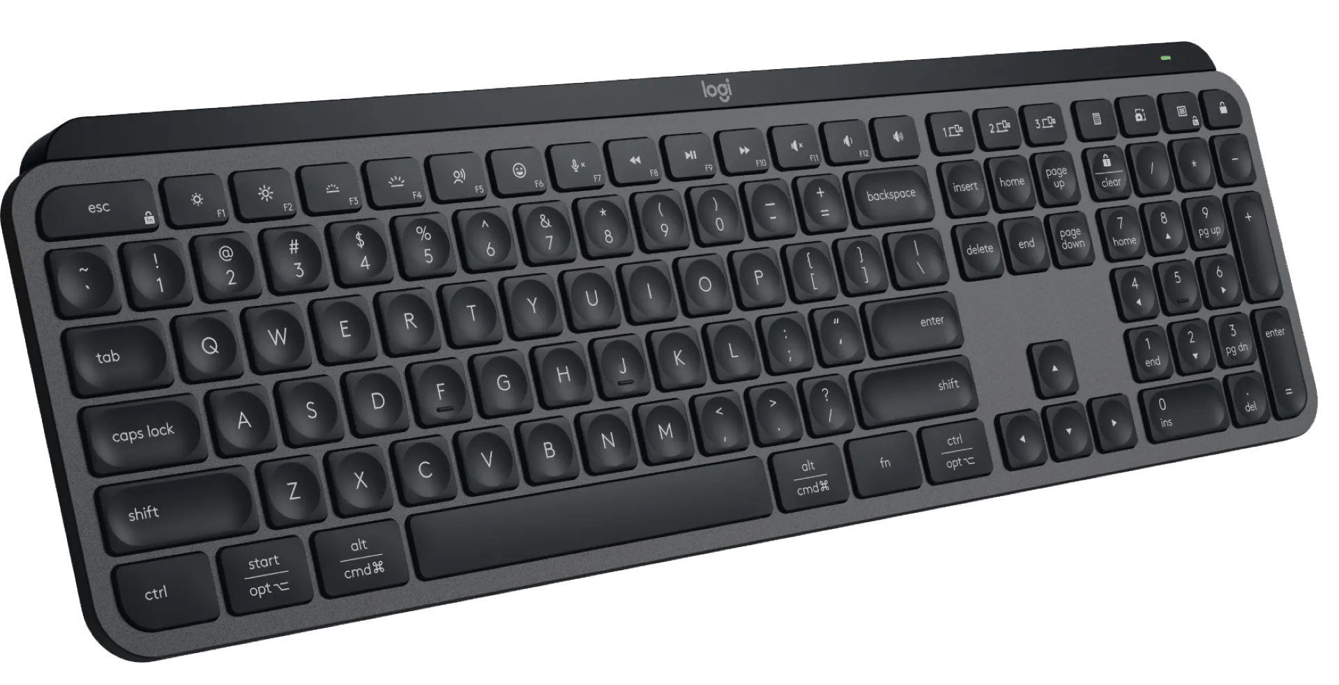 Werk snel, comfortabel en efficiënt met de Logitech MX Keys S Grafiet. De toetsen zijn gevormd naar je vingertoppen, waardoor je snel en vloeiend typt. Ook typt hij stiller, zodat je tijdens het werken geconcentreerd blijft. Net als bij zijn voorganger, de MX Keys, gaat de toetsenbordverlichting pas aan wanneer je vingers in de buurt van de toetsen komen. Dit nieuwe model past de helderheid van het licht ook aan op het omgevingslicht. Daarnaast verbind je de MX Keys S via bluetooth of de meegeleverde Logi Bolt ontvanger met maximaal 3 apparaten. Werk bijvoorbeeld op jouw Windows laptop, MacBook en iPad tegelijkertijd. Met een druk op de toetsen wissel je snel van apparaat. Daarnaast haal je nog meer uit je MX Keys S met de Logi Options+ software. Wijs snelkoppelingen toe, stel lichtinstellingen in en verbind hem met je Master 3S muis.