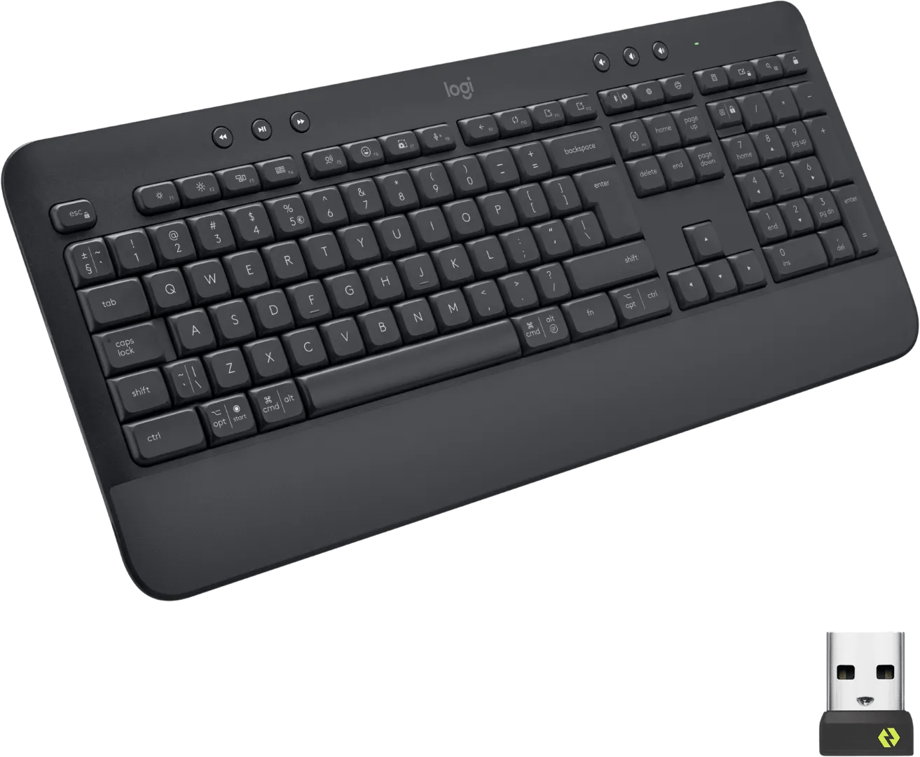 Werk comfortabel en ergonomisch met het Logitech Signature K650 Comfort Draadloos Toetsenbord Grijs. Dit draadloze toetsenbord sluit je op jouw laptop, MacBook of computer aan via bluetooth of via de Logi Bolt usb ontvanger. Met de polssteun van het toetsenbord heb je een meer ontlastende houding voor je polsen tijdens het typen. Ook klap je de steunen onder de bovenzijde van het toetsenbord omhoog, voor een prettigere houding van de polsgewrichten. Op deze manier werk je comfortabel uren achter elkaar met de K650 op je bureau. Met de voorgeprogrammeerde F toetsen wissel je tussen verschillende bureaubladen of pas je snel het geluid van je computer aan. Wil je de sneltoetsen een andere functie geven? Dan pas je dit gemakkelijk aan via de Logi Options+ software. Bovendien is hij morsbestendig, dus heb je geen stress als je een keer koffie morst.