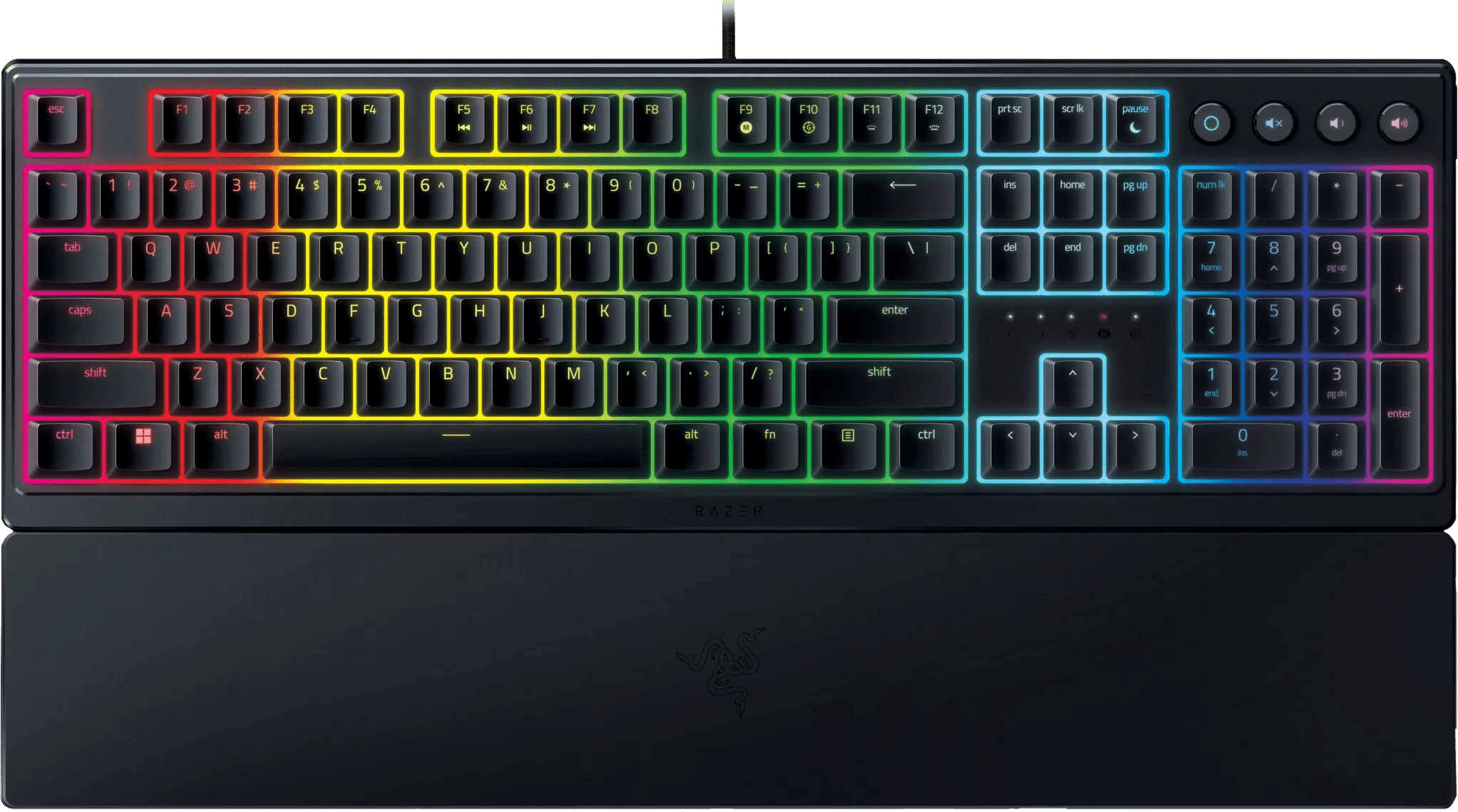 Game comfortabel en ergonomisch met de Razer Ornata V3 Gaming Toetsenbord Qwerty. Dit bedrade gaming toetsenbord heeft Razer mecha membraan toetsen die voelen als clicky toetsen. Hierdoor voel en hoor je feedback wanneer je een toets indrukt. Bedien makkelijk je volume via de dedicated mediaknoppen op je gaming toetsenbord. Dit is een volledig gaming toetsenbord met een numeriek blok. Hierdoor gebruik je jouw gaming toetsenbord ook voor andere dingen dan gaming. Je sluit dit gaming toetsenbord aan met de usb A kabel. Hierdoor is het toetsenbord plug and play, waardoor je hem gelijk gebruikt. Stel zelf de RGB verlichting in per toets via de Razer Synapse software en kies tussen 16,8 miljoen kleuren. Zo past jouw gaming toetsenbord bij de rest van je setup.