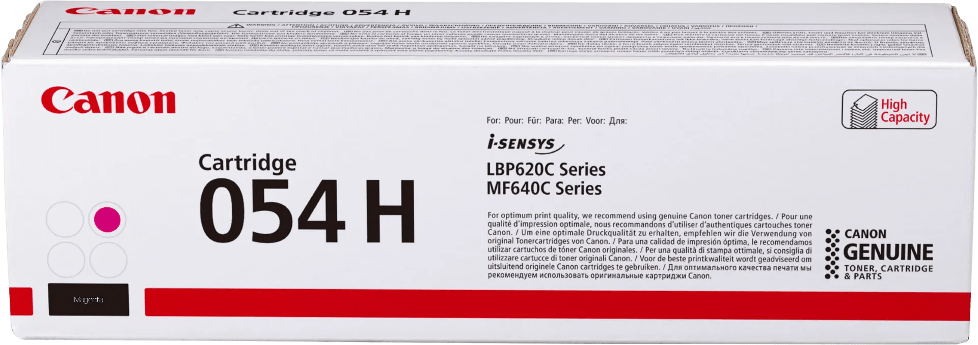 Deze Canon 054 H Toner Magenta (Hoge capaciteit) is een toner geschikt voor onderstaande Canon laserprinters. Geschikte printers Canon i-SENSYS i-SENSYS MF645Cx i-SENSYS MF643Cdw i-SENSYS MF641Cw i-SENSYS LBP623Cdw i-SENSYS LBP621Cw