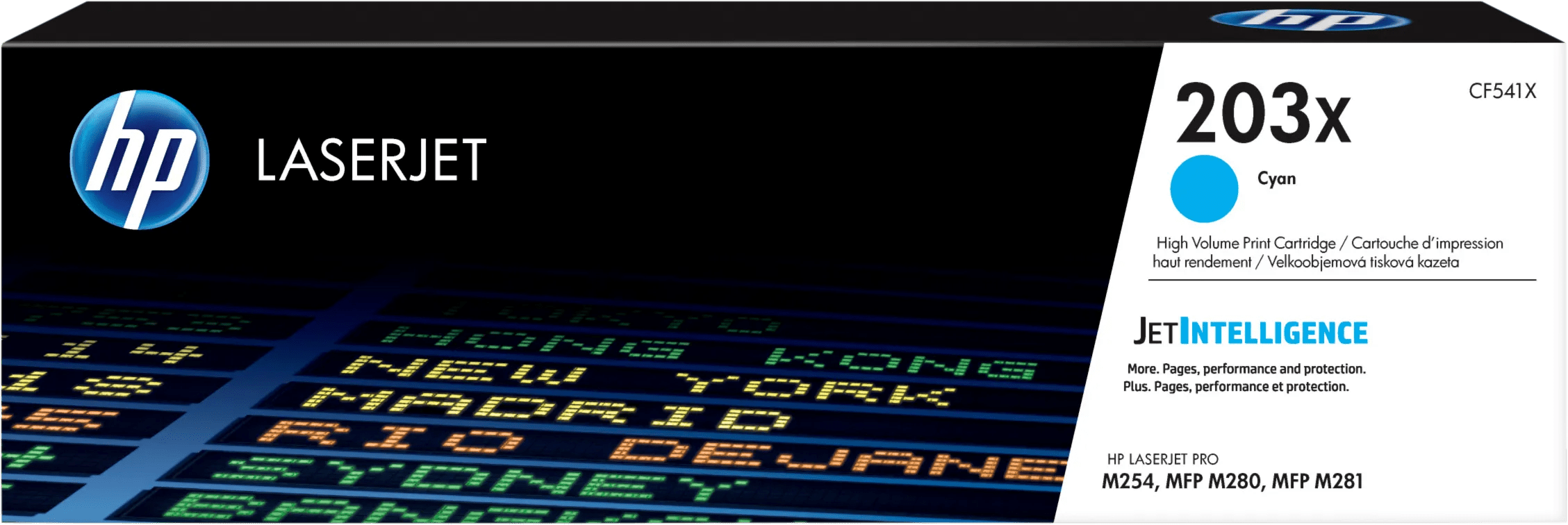 Vervang de toner van je laserprinter met de HP 203X LaserJet Toner Cyaan (Hoge Capaciteit). Dit is een XL toner. Deze zijn even groot als een normale toner, maar hebben meer inhoud. Je print tot 2.500 pagina’s in kleur met deze toner. Is de toner leeg? Dan stuur je deze kosteloos op naar HP. Bekijk hieronder voor welke printers deze toner geschikt is: