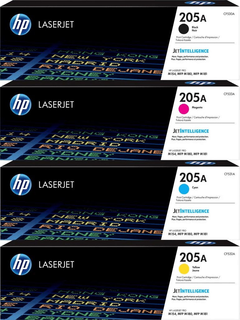 Vervang in één keer al je lege toners met het HP 205A Toners Combo Pack. Deze bundel heeft een set toners in de kleuren zwart, cyaan, magenta en geel. Deze toner cartridges zijn geschikt voor onderstaande HP printers.