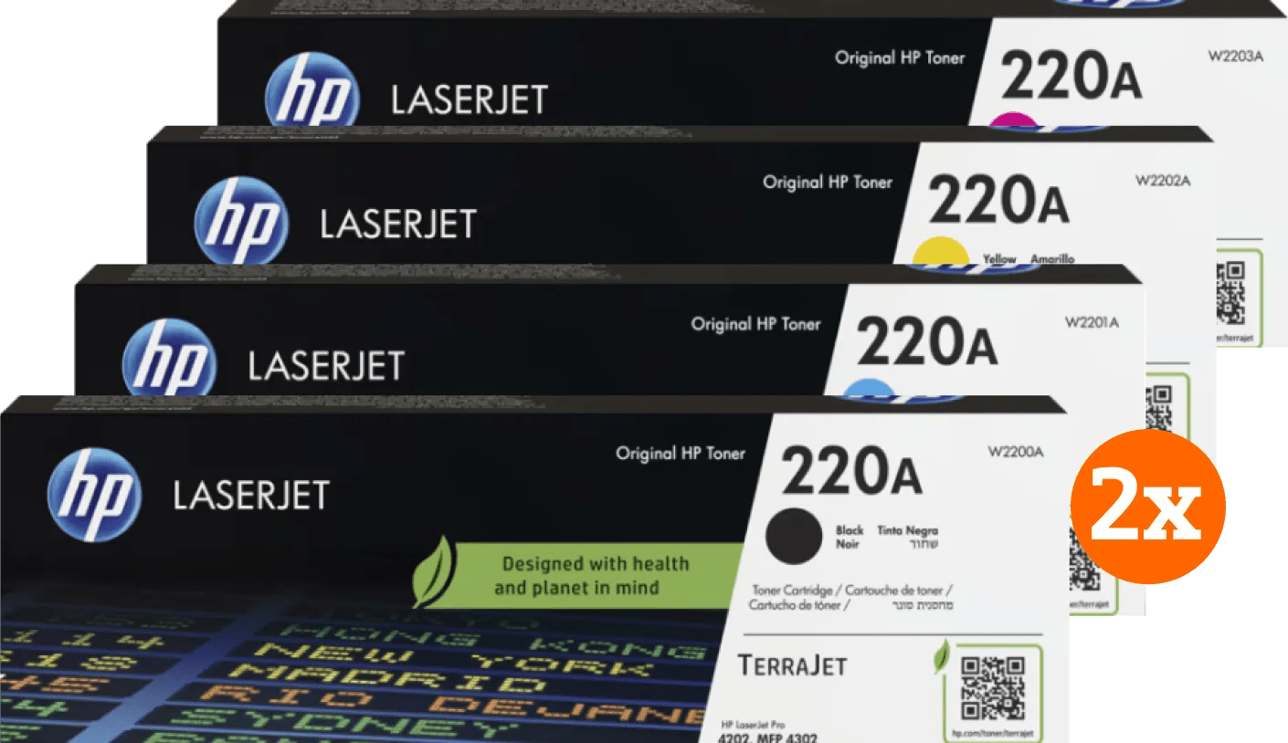 Met deze HP 220A LaserJet Toner Combo Pack (2 stuks) heb je genoeg toner in huis voor al jouw documenten. Je print tot wel 4.000 pagina’s in zwart-wit en kleur. De patronen zijn gemaakt van gerecycled plastic en zijn makkelijk recyclebaar. Is de toner leeg? Dan stuur je deze kosteloos op naar HP. Bekijk hieronder voor welke printers deze toner geschikt is: