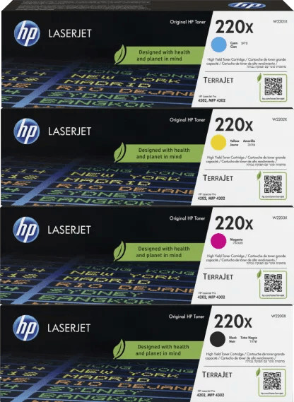 Vervang de toner van je laserprinter met de HP 220X LaserJet Toner Combo Pack. Dit zijn XL toners. Deze zijn even groot als een normale toner, maar hebben meer inhoud. Je print tot wel 7.500 pagina’s in zwart-wit en 5.500 pagina’s in kleur. De patronen zijn gemaakt van gerecycled plastic en zijn makkelijk recyclebaar. Is de toner leeg? Dan stuur je deze kosteloos op naar HP. Bekijk hieronder voor welke printers deze toner geschikt is:
