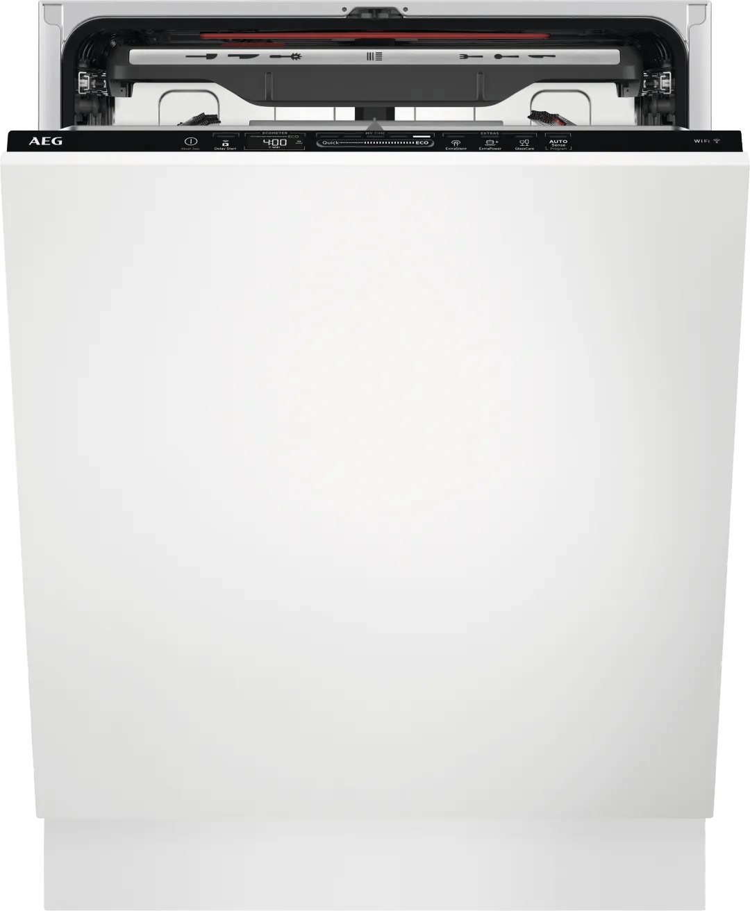 Je bespaart op je energierekening met de AEG FSE77728P GlassCare inbouw vaatwasser. Dankzij energieklasse A-10% verbruik je zeer weinig energie. Plastic bakjes en schalen komen droog uit de geïntegreerde vaatwasser. De deur opent aan het einde van het programma, zodat de vaat aan de koele buitenlucht droogt. Dat bespaart jou weer energie. Je verwijdert etensresten beter dankzij de SatelliteClean sproeiarm. Deze sproeiarm draait extra rond, waardoor het water al het vuil bereikt. Voor aangekoekte resten gebruik je het speciale intensief programma. Kopjes en drinkglazen zet je in de bovenste korf. Zelfs je delicate wijnglazen was je gerust in de vaatwasser. De GlassCare houders zorgen dat de champagneglazen goed op hun plek blijven en niet beschadigen.