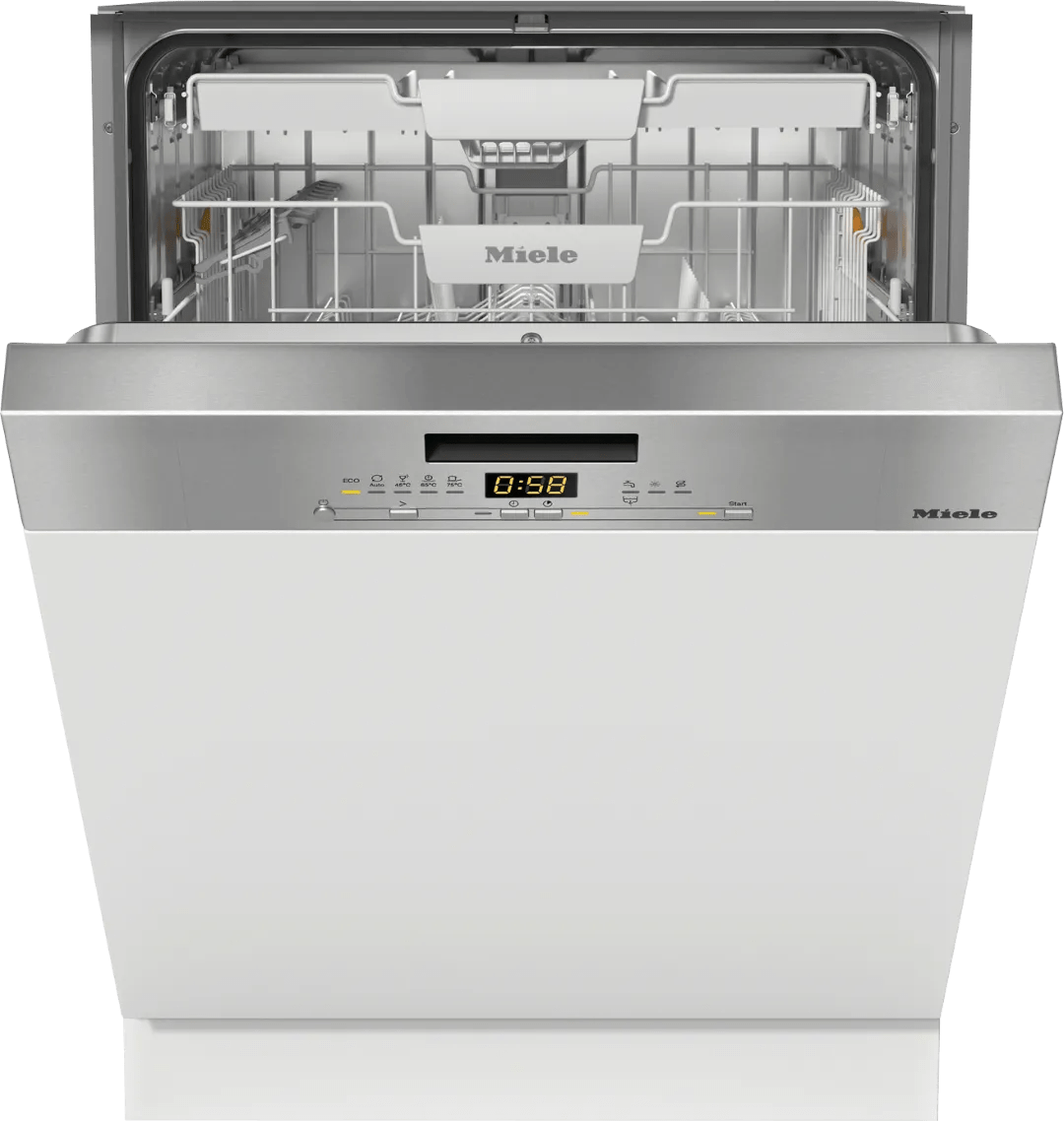 Je wast 14 couverts vaat snel en energiezuinig schoon met de Miele G 5632 SCi CLST half geïntegreerde vaatwasser. Via het display aan de buitenkant kies je 1 van de 5 verschillende vaatwasprogramma's. Heb je haast? Kies dan voor QuickPowerWash. Hiermee was je al je vaat in 58 minuten grondig schoon. Handig, wanneer je meerdere afwasbeurten wilt draaien na een feestje thuis. Je verdeelt je bestek over de bestekmand en besteklade. Wanneer je veel pannen en borden hebt, haal je de mand gemakkelijk uit de korf. Zo heb je meer ruimte onderin voor grotere vaat. Na het programma opent de vaatwasser automatisch met AutoOpen, zodat je vaat beter droogt.