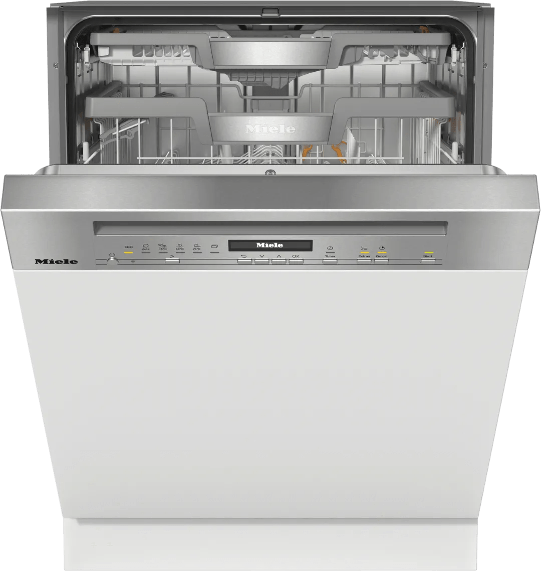 Met energieklasse A van de Miele G 7232 SCi CLST inbouw vaatwasser was jij 14 couverts energiezuinig schoon. Soeppannen, borden en ovenschalen zet je in de onderste korf. Hier heb je extra ruimte door het ontbreken van de bestekmand. Heb je aangekoekte resten op je vaat? Gebruik dan de intensieve stand. Zo spoelen ook hardnekkige resten weg. Je bestek en spatels leg je in de speciale besteklade bovenin. In de bovenste korf heb je ruimte voor colaglazen, soepkommen en koffiekopjes. Heb je meer ruimte nodig voor een hoog glas? Dan verstel je de korf gemakkelijk omlaag. Na het programma opent de deur. Zo haal je je plastic vershoudbakjes droog uit de vaatwasser.