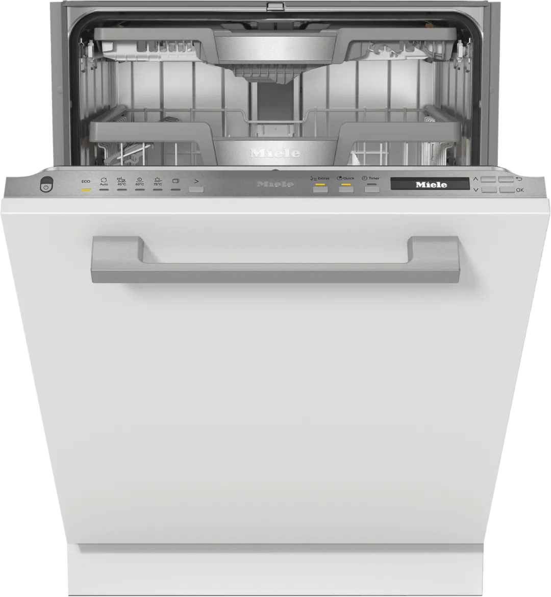 De Miele G 7297 SC Vi XXL wast je vaat stil, snel en energiezuinig. Deze extra brede vaatwasser biedt genoeg plek voor 14 couverts. De machine is met een geluidsniveau van 42 decibel een zeer stille vaatwasser. Hierdoor werk je ongestoord aan de keukentafel terwijl de machine zijn werk doet. De QuickPowerWash functie wast je vaat al schoon binnen 58 minuten. Maar je bespaart niet alleen op tijd. Dankzij energieklasse A bespaar je namelijk tot &euro: 300,- op je energiekosten. Is je zelfgebakken cake iets te hard gegaan? Geen zorgen. Plaats de cakevorm in de intensieve zone in de vaatwasser en deze wast hem helemaal schoon. Na het afwasprogramma opent de deur van de machine automatisch voor een goed droogresultaat.