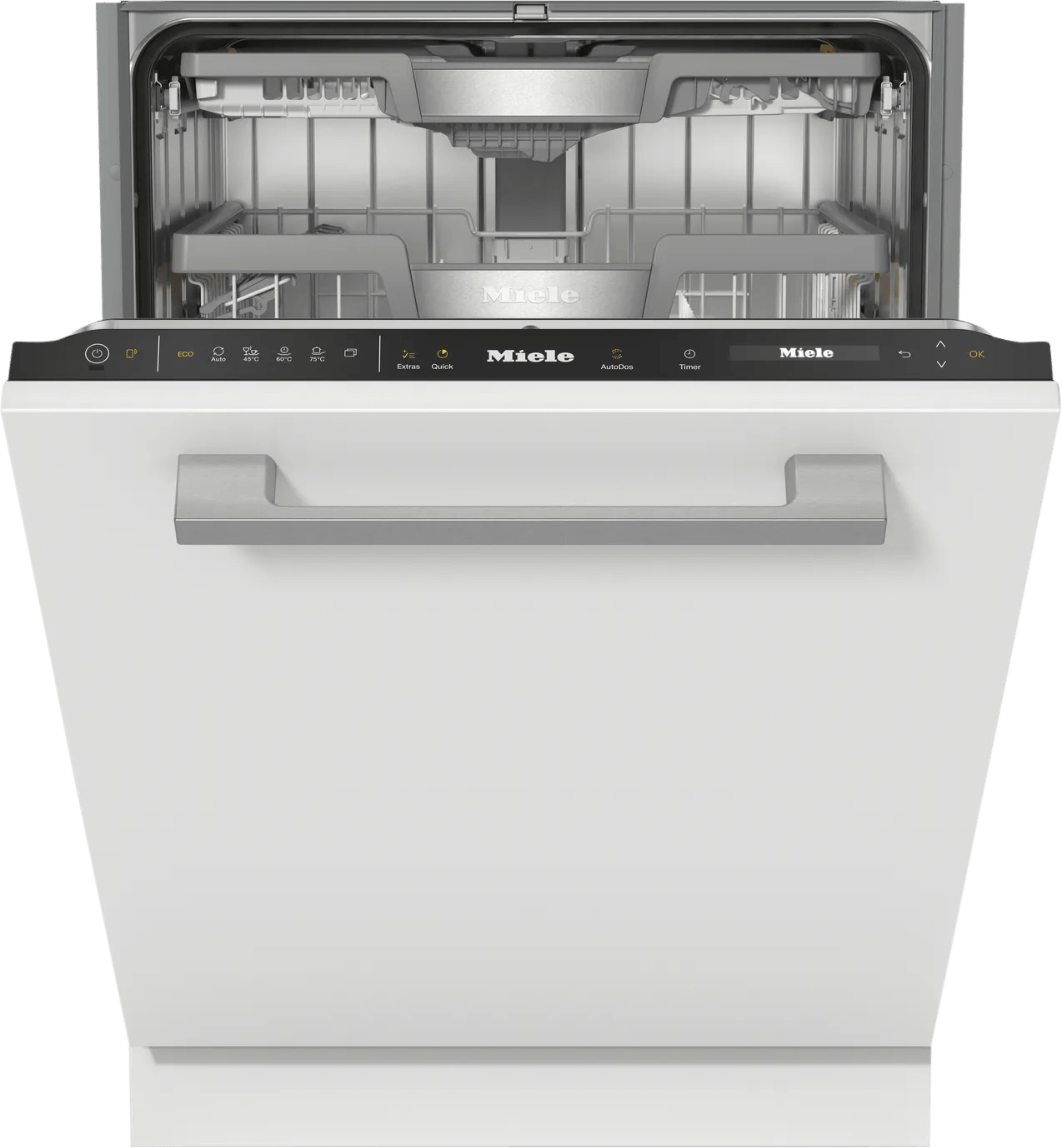 De Miele G 7677 SC Vi XXL AutoDos is een extra brede vaatwasser die afwasmiddel automatisch doseert. Dit doet de afwasmachine met de geïntegreerde PowerDisk. Je gebruikt nooit te veel of te weinig afwasmiddel, doordat de machine en het poeder precies op elkaar zijn afgestemd. Dankzij de QuickPowerWash functie heb je al een schoon servies binnen 58 minuten. Je aangekoekte pan macaroni zet je onder in de vaatwasser in de intensieve zone. Deze en andere vaatwasprogramma’s kies je waar en wanneer je wilt via een app op je smartphone. De deur van de machine opent automatisch na afloop van het programma. Hierdoor verlaat de hete lucht de machine en krijgen jouw borden en pannen de tijd om af te koelen en te drogen. Zo plaats je jouw vaat direct terug in de kast.