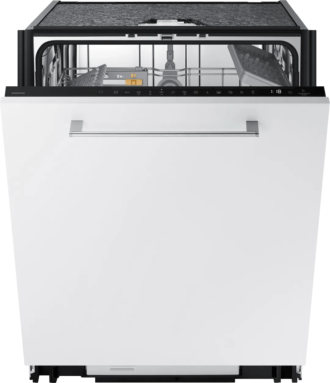 Je wast 13 couverts vaat energiezuinig schoon met de Samsung DW60DG760B00U1 volledig geïntegreerde vaatwasser. In de onderste korf heb je genoeg ruimte voor al je borden, pannen en ovenschalen. Dankzij de speciale sproeiarmen bereik je alle hoekjes van de vaatwasser. Zo was je niets meer met de hand na. Je stelt de indeling van de bovenste korf gemakkelijk in met de schuif. Zo maak je plaats voor gebaksbordjes, kommen of wijnglazen. Heb je snel een lading schone vaat nodig? Kies dan voor de SpeedBooster functie. Zo is je vaatwasprogramma sneller klaar. Via de app download je extra vaatwasprogramma's en zie je precies wanneer het programma klaar is.