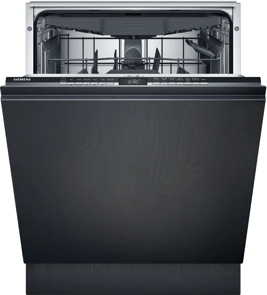 De Siemens SN63EX12CN volledig geïntegreerde vaatwasser wast jouw vaat snel, stil en energiezuinig. Dankzij de varioSpeed Plus functie wast de machine de vaat tot wel 3 keer sneller schoon. Je kiest deze functie gemakkelijk via de Home Connect app op je smartphone. Zelfs wanneer het programma al draait. Je aangekoekte lasagneschaal eerst een nachtje laten weken is niet meer nodig dankzij de intensieve zone onder in de vaatwasser. Na de afwasprogramma’s opent de deur van de machine automatisch. Hierdoor koelt je vaat af en droogt deze door de natuurlijke luchtstroom. Je servies kan daarna direct terug de kast in zonder dat je deze nog nadroogt met een theedoek. Het lage geluidsniveau van 40 decibel zorgt ervoor dat je geen last hebt van een zoemend geluid op de achtergrond terwijl de vaatwasser draait.