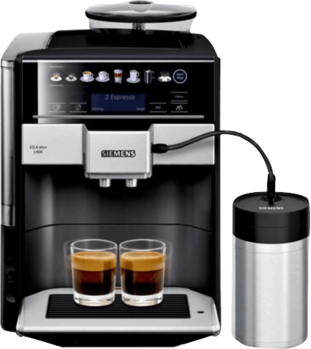 Met de Siemens EQ.6 Plus S800 TE658209RW zet je van elke variant 2 koffies tegelijkertijd. Zo is deze machine geschikt voor jou als er veel koffiedrinkers in huis wonen of als je vaak visite krijgt. Je kiest bijvoorbeeld uit een americano, cappuccino, cortado, flat white of espresso. Je ontvangt direct een rvs melkkan. Hierin steek je gemakkelijk de melkslang. Zo zet de machine automatisch voor jou een melkspecialiteit. Via het kleurendisplay met touchknoppen sla je koffierecepten op. Zo stel je de koffiesterkte, watertemperatuur en de hoeveelheid koffie en melk in. Je slaat 2 recepten op als je favoriet. Na het koffiezetten, spoelt het melksysteem zich automatisch schoon. De machine heeft een stevige behuizing, waardoor hij een lange tijd meegaat.