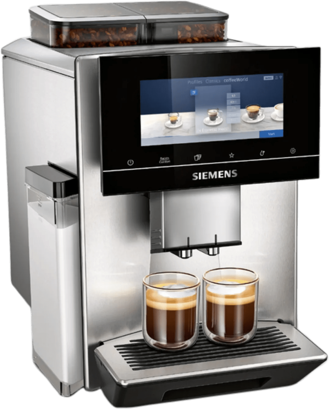 Wissel af tussen 2 verschillende koffiesmaken met het dubbele bonenreservoir van de Siemens EQ900 TQ907R03 RVS. Zo drink je `s ochtends een sterke kop koffie en `s avonds decaf. Dankzij de boonherkenning past de machine de instellingen automatisch aan op de bonen in het reservoir. Zo weet je zeker dat alle aroma's uit jouw favoriete koffiebonen in je kopje terechtkomen. Je past recepten naar eigen smaak aan en slaat deze op onder één van de 10 gebruikersprofielen. Zo sla je recepten op voor jouw huisgenoten, vrienden en familie. Door de rvs behuizing is `ie erg stevig en gaat de machine langer mee. Het touchscreen display begeleidt je bij het koffiezetten en bij het onderhoud van de machine.
