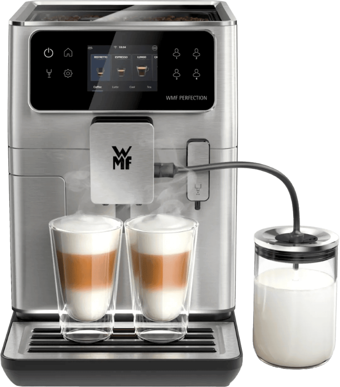 Kies uit 19 voorgeprogrammeerde koffiespecialiteiten die je naar eigen smaak instelt met de WMF Perfection 660 CP813D. Met de Expert Modus pas je zelf de sterkte, hoeveelheid en temperatuur van je koffie aan. Je slaat je favoriete recepten op onder één van de 6 gebruikersprofielen. Het touchscreen display begeleidt je door de stappen van het onderhoud. Zo houd je jouw koffiemachine gemakkelijk schoon en gaat `ie langer mee. Heb je zin in een cappuccino of latte macchiato? Doe de melkslang dan in het meegeleverde melkreservoir. Zo zet je met één druk op de knop een melkspecialiteit naar keuze. Drink je op een warme dag liever koude koffie? Dan zet je met deze machine ook een ijskoffie.