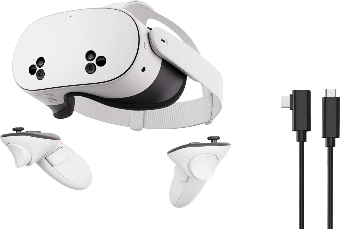 Speel veel verschillende VR games met de Meta Quest 3S VR bril en Link Cable. De Link Cable koppel je makkelijk aan je pc of laptop. Hierdoor heb je toegang tot nog meer VR games via SteamVR. De Meta Quest 3S is een actieve VR bril. Hierdoor gebruik je hem zonder pc of laptop en zit je niet vast aan een kabel. Deze VR bril heeft Mixed Reality. Mixed reality is een combinatie van virtual en augmented reality. Zo beleef je een virtuele wereld om je heen of ontwijk je virtuele objecten in de echte wereld. Bij de Meta Quest 3S krijg je de Touch Plus controllers met haptische feedback. Hierdoor voel je de trillingen in de controllers wanneer er iets in je game gebeurt. Je downloadt meer dan 500 titels via de Meta Quest Store en geniet van alle soorten content. Zo speel je games zoals Assassin’s Creed Nexus VR en bekijk je video’s via Netflix VR. Meta is de nieuwe naam die Oculus vervangt. Deze VR bril maakt deel uit van Facebook.