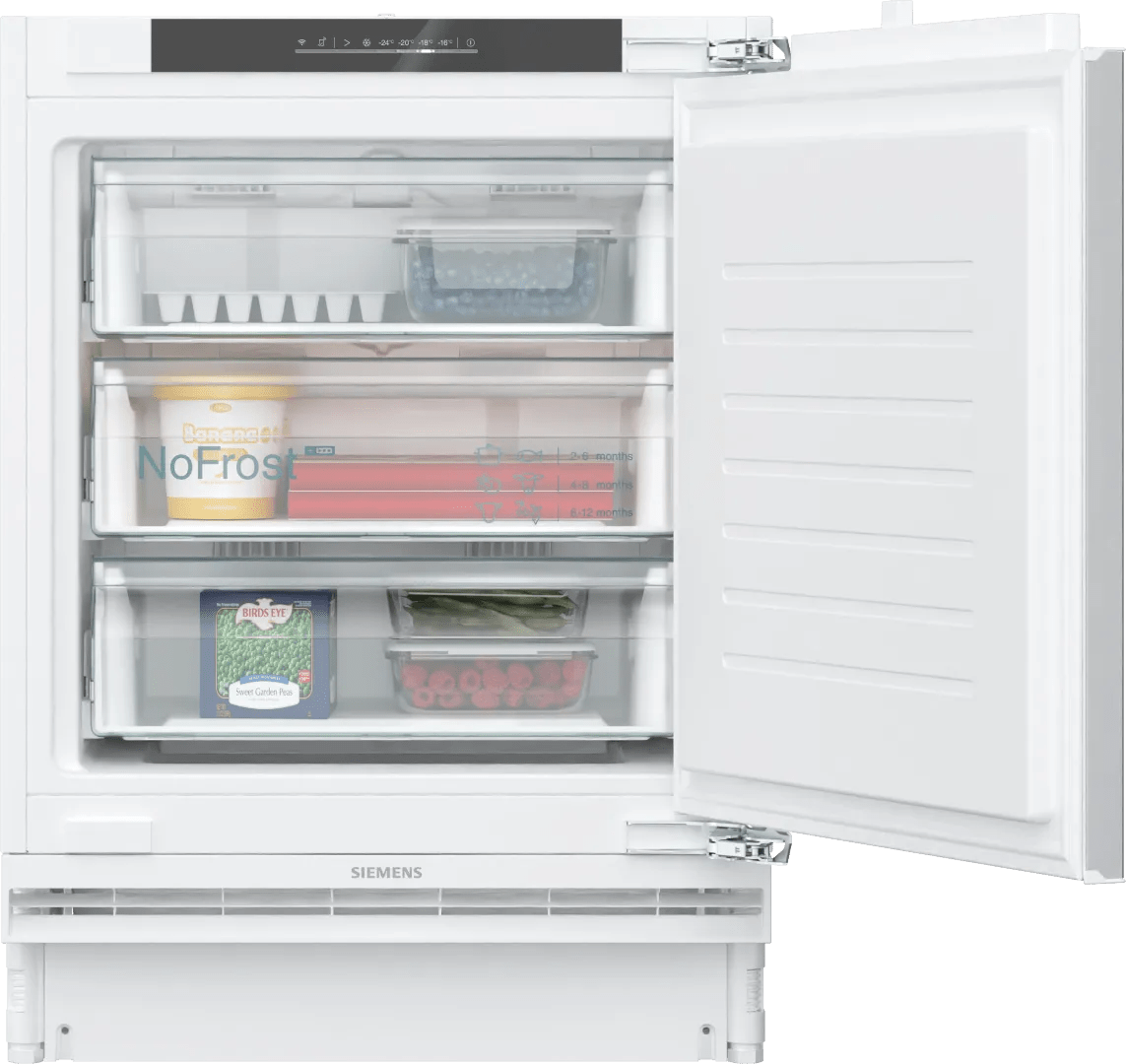 De Siemens GU21NADE0 is een compacte inbouw vriezer met een nishoogte van 82 centimeter. Met een inhoud van 85 liter heb je genoeg ruimte voor ijsjes, groenten en snacks. Je bewaart hiermee wat dagelijkse boodschappen. De 3 transparante lades zorgen voor een overzichtelijke indeling, zodat je meteen ziet hoeveel bosbessen er nog zijn. Door No Frost ontstaat er geen ijslaag en is ontdooien niet meer nodig. Met een geluidsniveau van maximaal 35 decibel is de vriezer stil en heb je geen last van lawaai. Zo plaats je deze ook in een open keuken onder je aanrecht en werk je ongestoord aan de keukentafel. Door de SoftClose deur heb je nog minder last van lawaai.